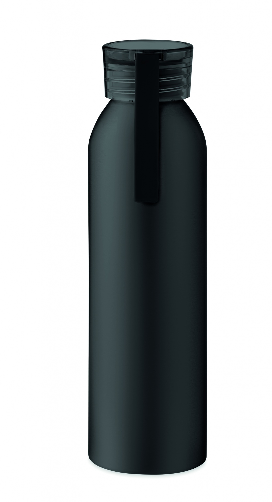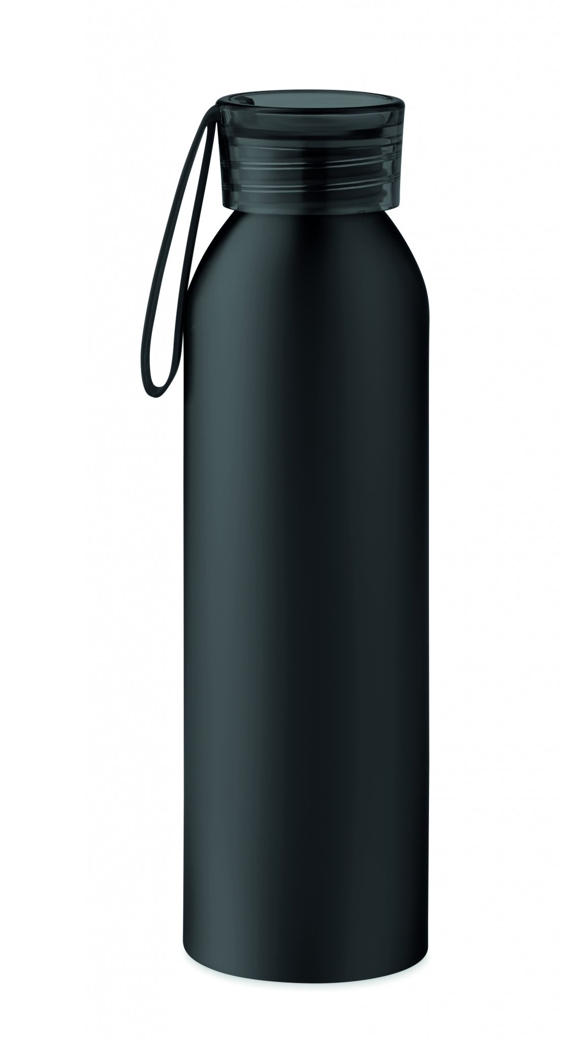 Einwandige Flasche aus recyceltem Aluminium mit Verschluss aus PS mit Silikon-Schlaufe. Füllmenge: 600 ml. Auslaufsicher.