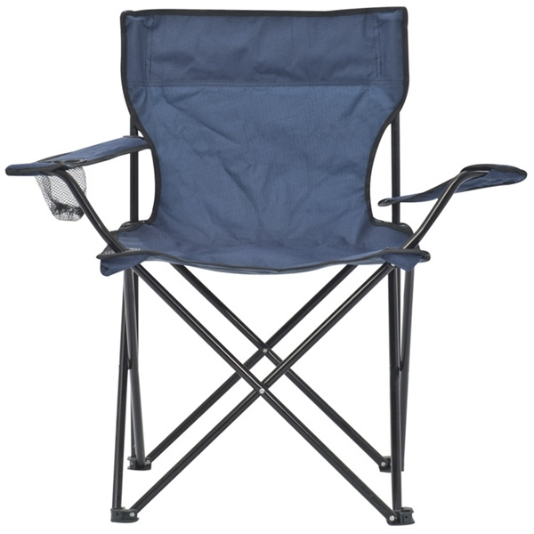 Klappbarer Sessel mit stabilem Stahlrahmen, hochwertigem, robustem Polyesterbezug, integriertem Getränkehalter, Tragetasche und einer Belastbarkeit bis 100 KG. Ihr Logo drucken wir auf die Tragetasche.