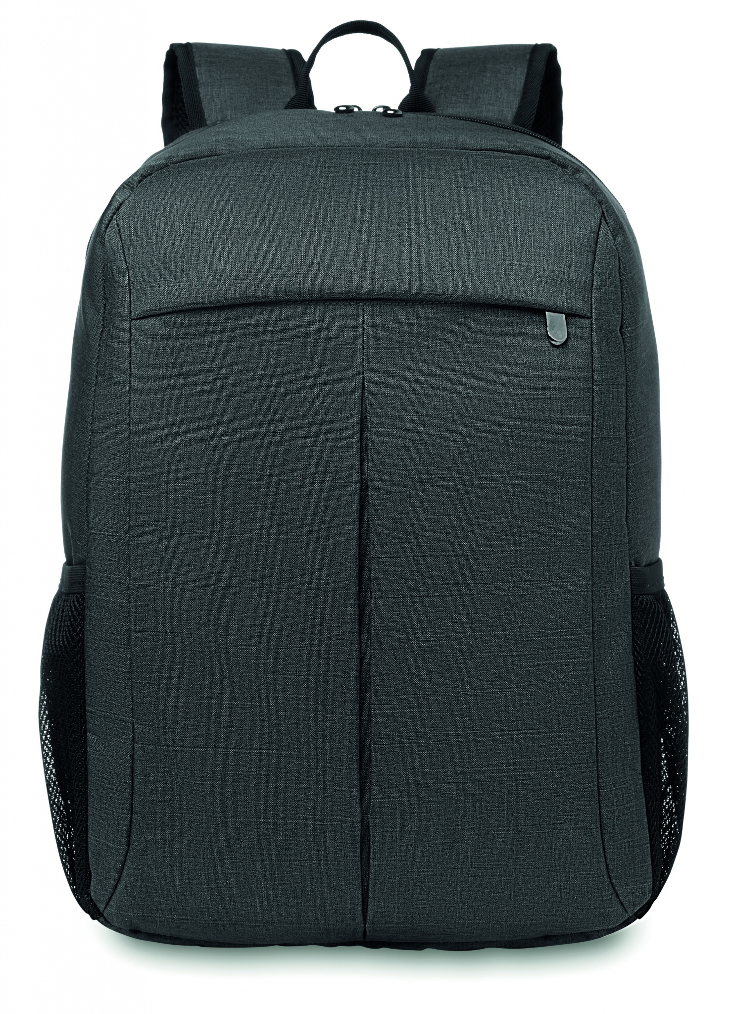 15'' Laptop Rucksack aus 2farbigem 360D Polyester. Inklusive Laptop- und Tablet-Fach sowie Frontfach mit Reißverschlussfach. Gepolsterte Rückseite und gepolsterte Schultergurte. Mit Trolley-Halterung.