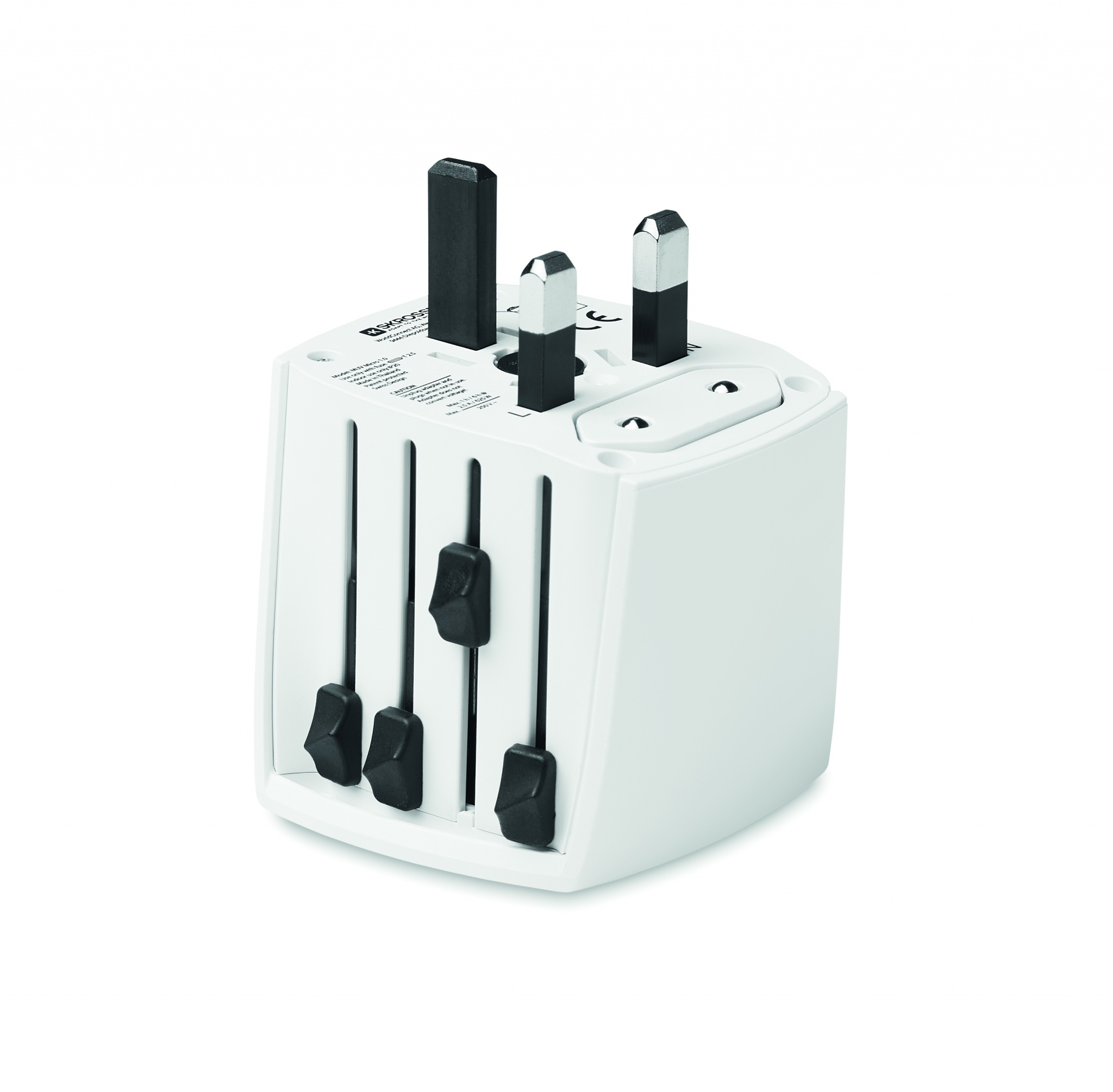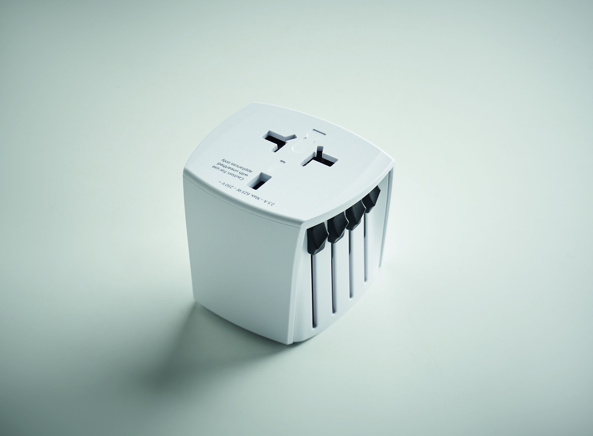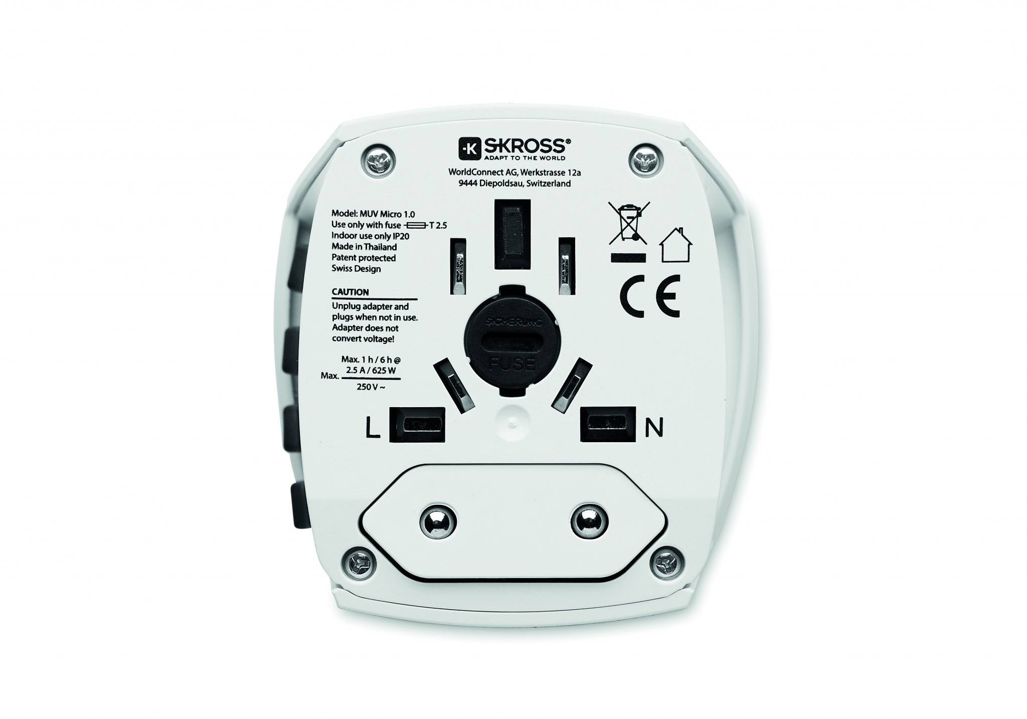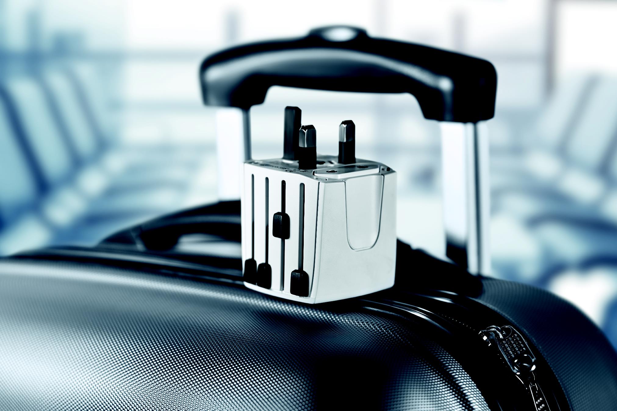 Zwei-poliger universal Reise-Adapter (nur für ungeerdete Geräte) für Europa, USA/Japan, Australien/China. Erfüllt alle relevanten internationalen Sicherheitsstandards und Normen. Mit Kindersicherung.
