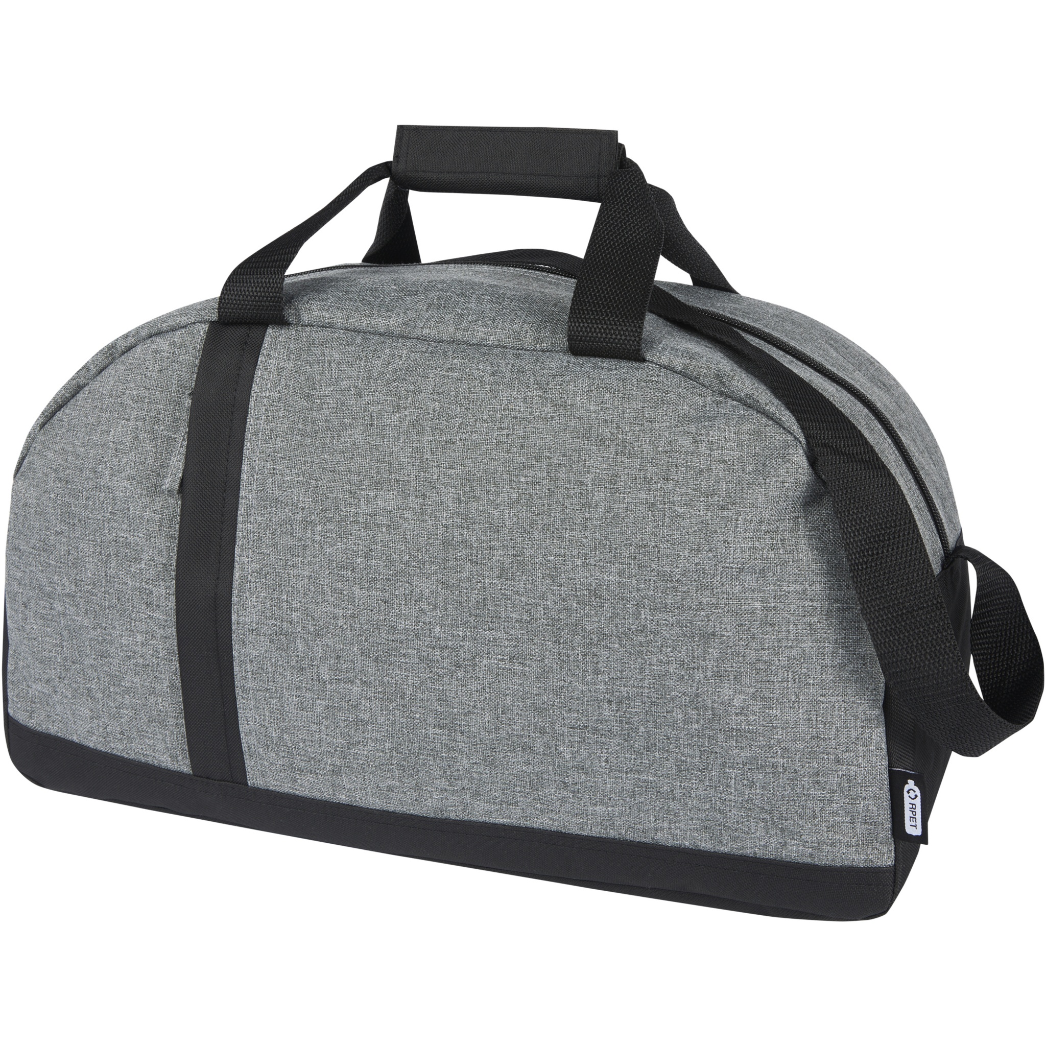 Die Reclaim GRS recycelte zweifarbige Sport-Reisetasche ist außen aus 100 % recycelten Materialien hergestellt und verfügt über eine vertikale Reißverschlusstasche auf der Vorderseite und ein geräumiges Hauptfach mit Reißverschluss. Die mit Gurtband umwickelten Tragegriffe und die verstellbaren Schultergurte sorgen für Tragekomfort und eignen sich für sportliche Aktivitäten.