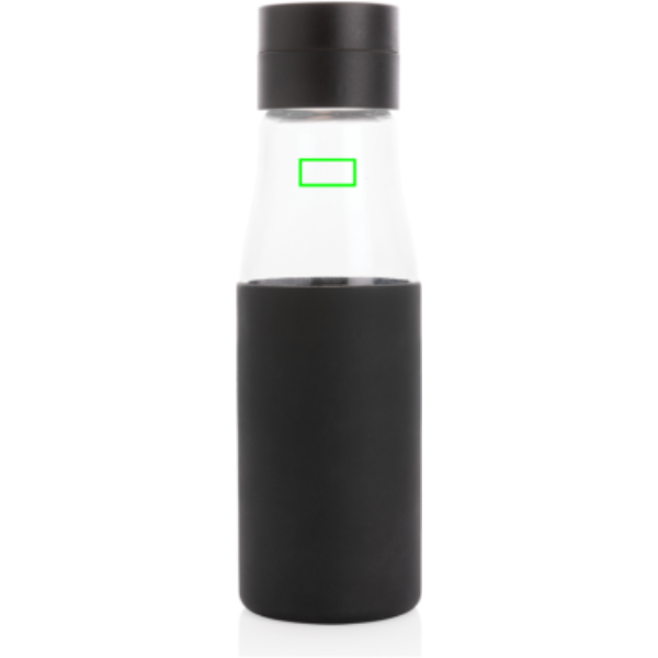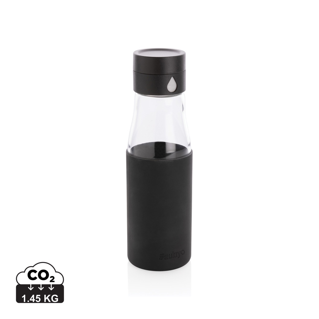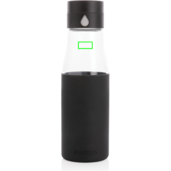 Ukiyo Trink-Tracking-Flasche aus Glas mit Hülle, Schwarz