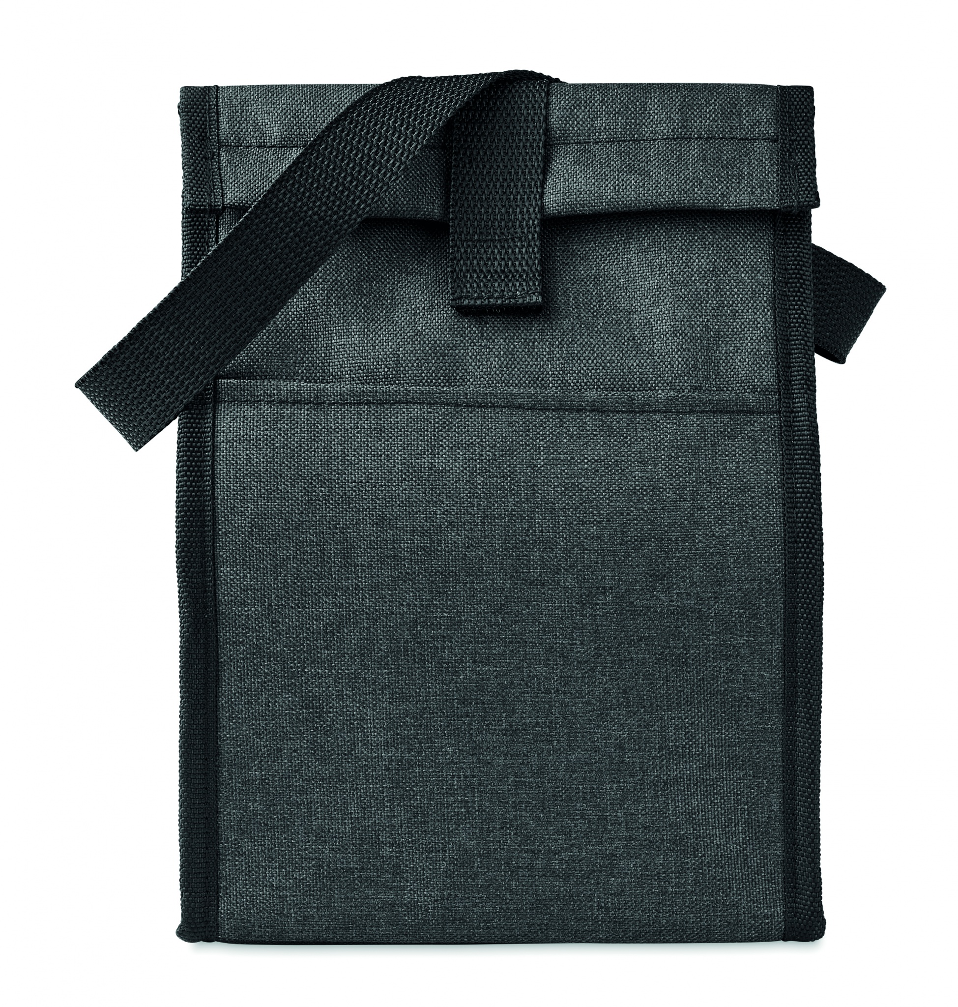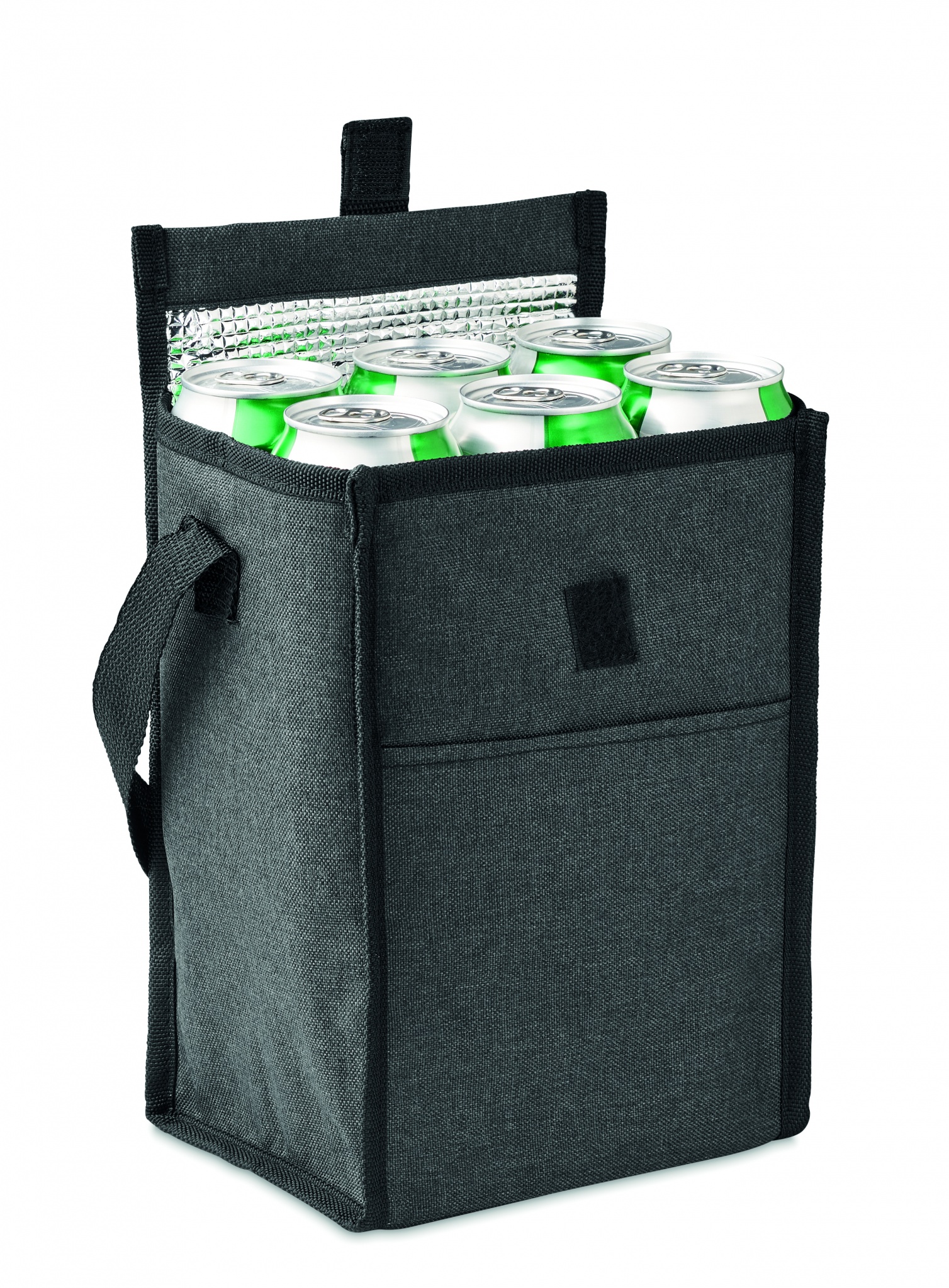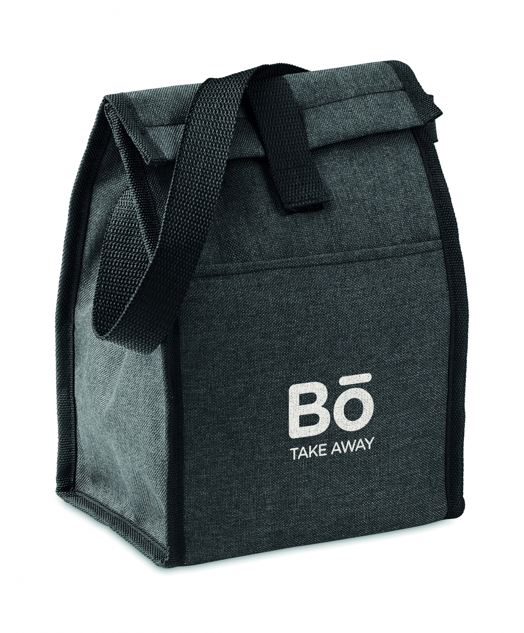 Insulated lunch bag in 600D RPET with front pocket. Capacity 3L. Insulation material: 2 mm PE foam with aluminium foil.