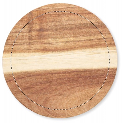 Small acacia wood cheese board with knife in stainless steel. Presented in corrugated carton giftbox. Wood is a natural product, there may be slight variations in colour and size per item, which can affect the final decoration outcome.