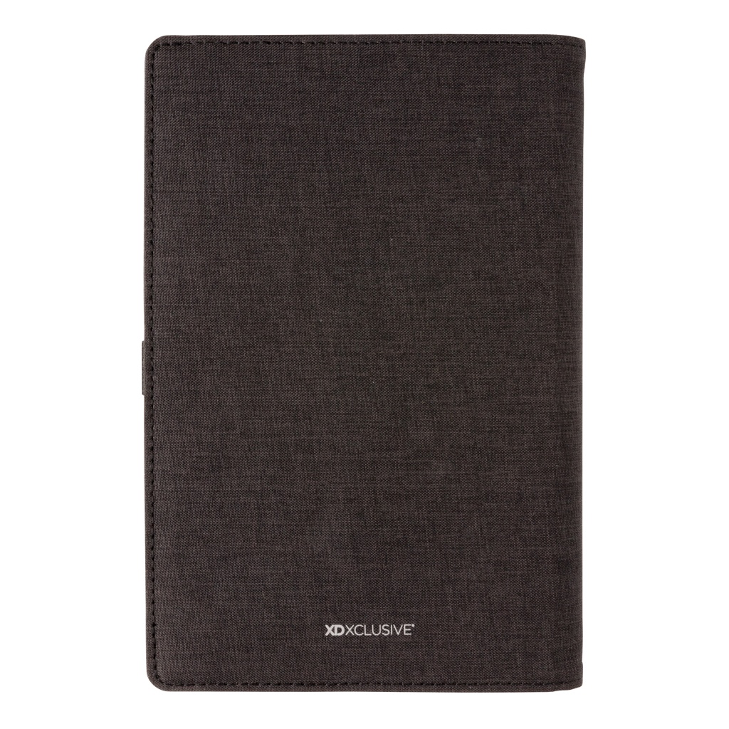 The Air 5W wireless charging refillable notebook cover allows you to charge your smartphone without the cables. Simply put the phone on top and start charging! It comes with a 80cm micro USB cable so you can easily connect your cover to any power source. The cover is made from polyester and has an elastic closure. The notebook inside has a black soft PU cover and had 80 sheets/160 lined pages cream coloured 70 grams paper. Input:5V/2A - Wireless output:5V/1A. Registered design®