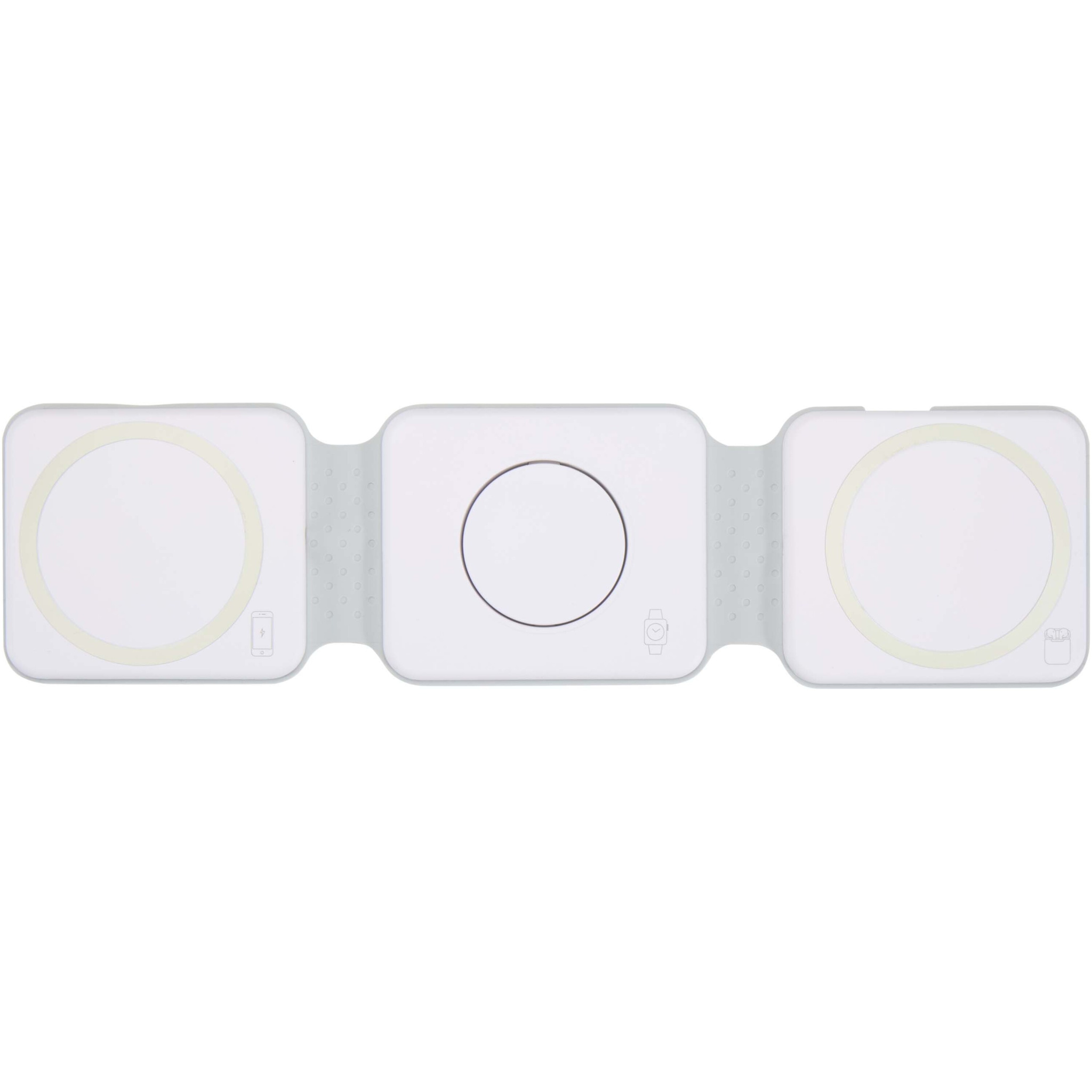The Armus 3-in-1 wireless charger is made from recycled plastic, and can power a smartphone, AirPods, and iWatch all at once, with up to 15W wireless charging speed. Its foldable, magnetic design lets you place your phone in landscape mode – perfect for watching while charging. Compatible with all wireless charging phones, including iPhone 12 and newer (or phones with a magnetic ring). Type-C connector included.