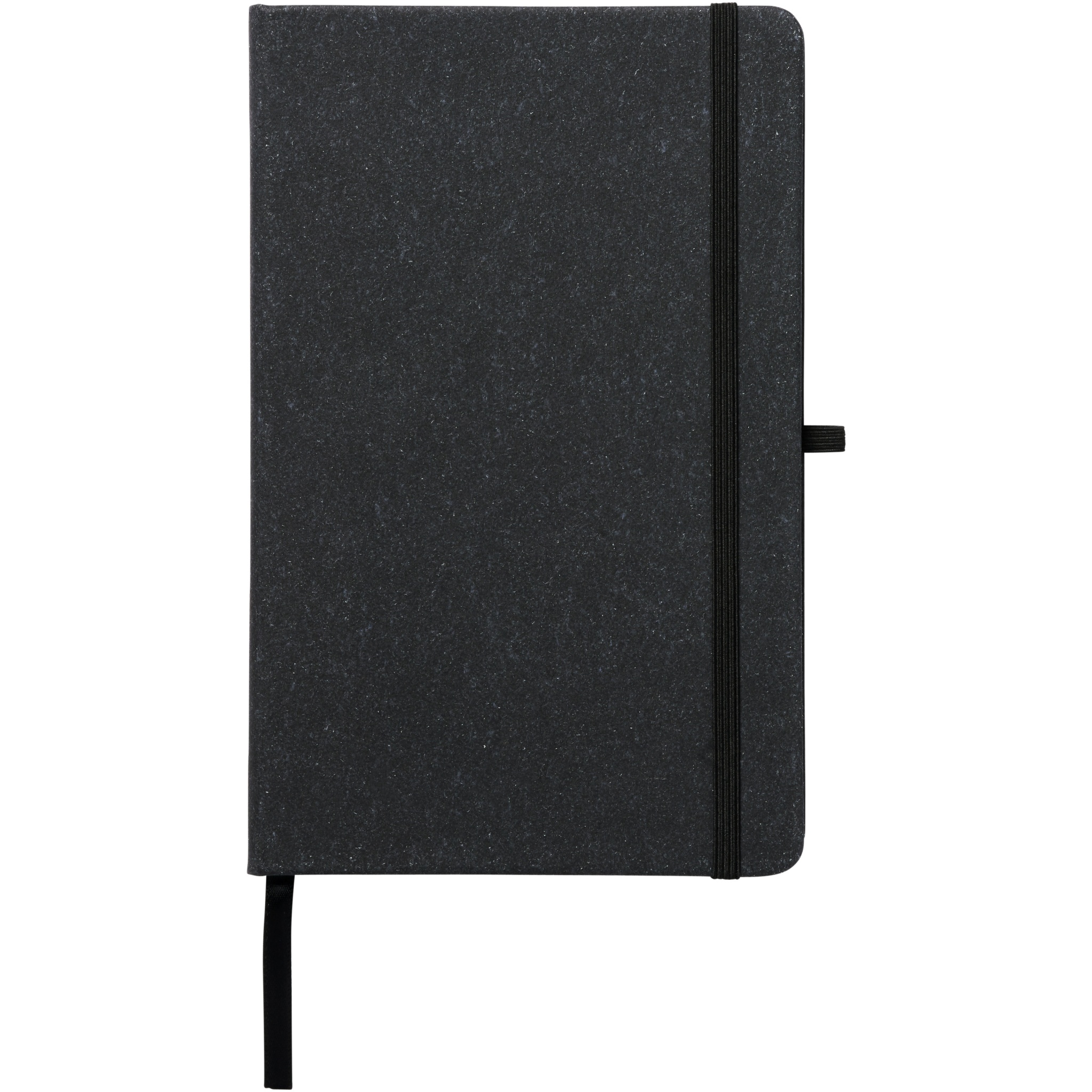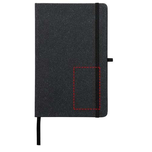 A5 size reference notebook with cover made of leather leftover pieces. Features an elastic band, pen loop, ribbon marker and 80 sheets, 80 g/m² lined paper.