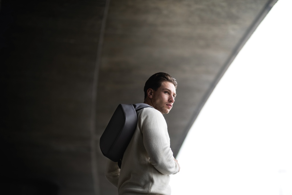 Safe, comfortable, and smart, the Bobby Sling was designed for city travelers. Feel protected with the famous Bobby anti-theft features like hidden zippers, no front access, RFID protected pocket, and cut-resistant material. There is also a 3-point safe buckle, ensuring your daily essentials are always along your body. Additional features like water-resistant material and an integrated USB charging port make this crossbody backpack the most convenient option for your everyday journey. Made from R-pet fabric with the AWARE™ tracer. With AWARE™, the use of genuine recycled fabric is guaranteed. 37% Recycled content. Registered design®