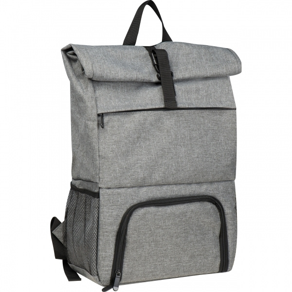 Stylish backpack made of robust 600D polyester with a separate cooling compartment. With the adjustable click fastener at the top, the size of the backpack can be individually adjusted to the filling. It also has a front compartment with zipper, two mesh compartments on the outside (one on the right and one on the left) and adjustable padded shoulder straps. We will print your logo on the flap of the cooling compartment.
