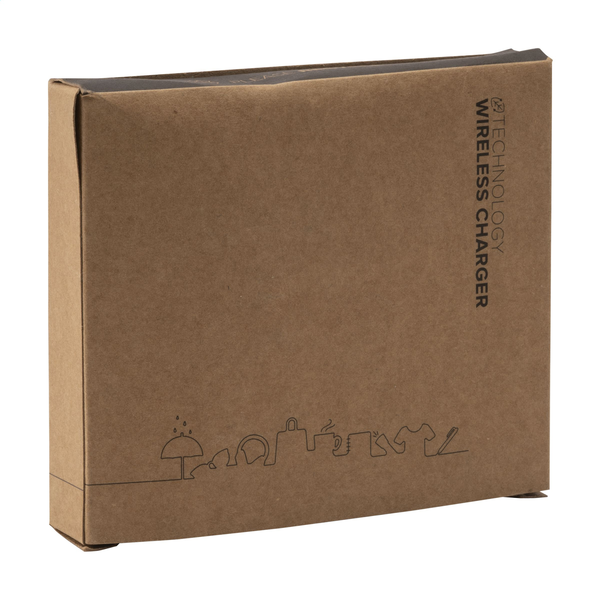 10W ABS/Bamboo for wireless charging of mobile phones. With glowing blue indicator ring. Compatible with all mobile devices that support QI wireless charging (newest generations Android and iPhone). Input: 9V/2A. Wireless output: 5V/10W. Includes a micro-USB charging cable and user manual. Each item is supplied in an individual brown cardboard box.
