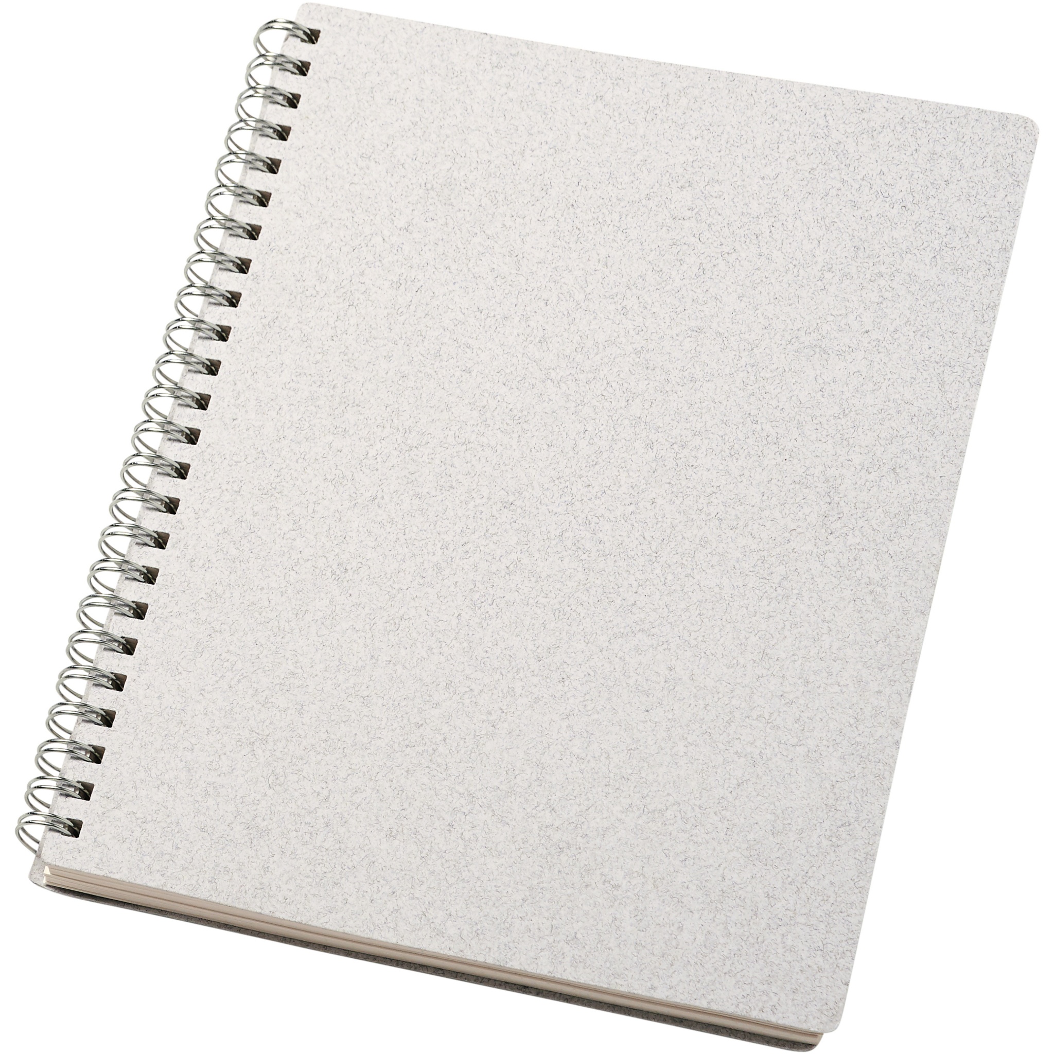 A5 size wire-o notebook made with responsibly sourced cover materials containing cotton waste (15%) and post-consumer recycled waste (40%). Includes 80 sheets, 80 g/m2 100% responsibly sourced recycled paper with a dotted grid. The dotted layout combines the advantages of lined, plain and squared pages, providing structure and stimulating creativity at the same time, making this notebook suitable for a wide range of users. Thanks to the spiral, the notebook can lie flat for convenience and can be folded easily. Made in Italy.