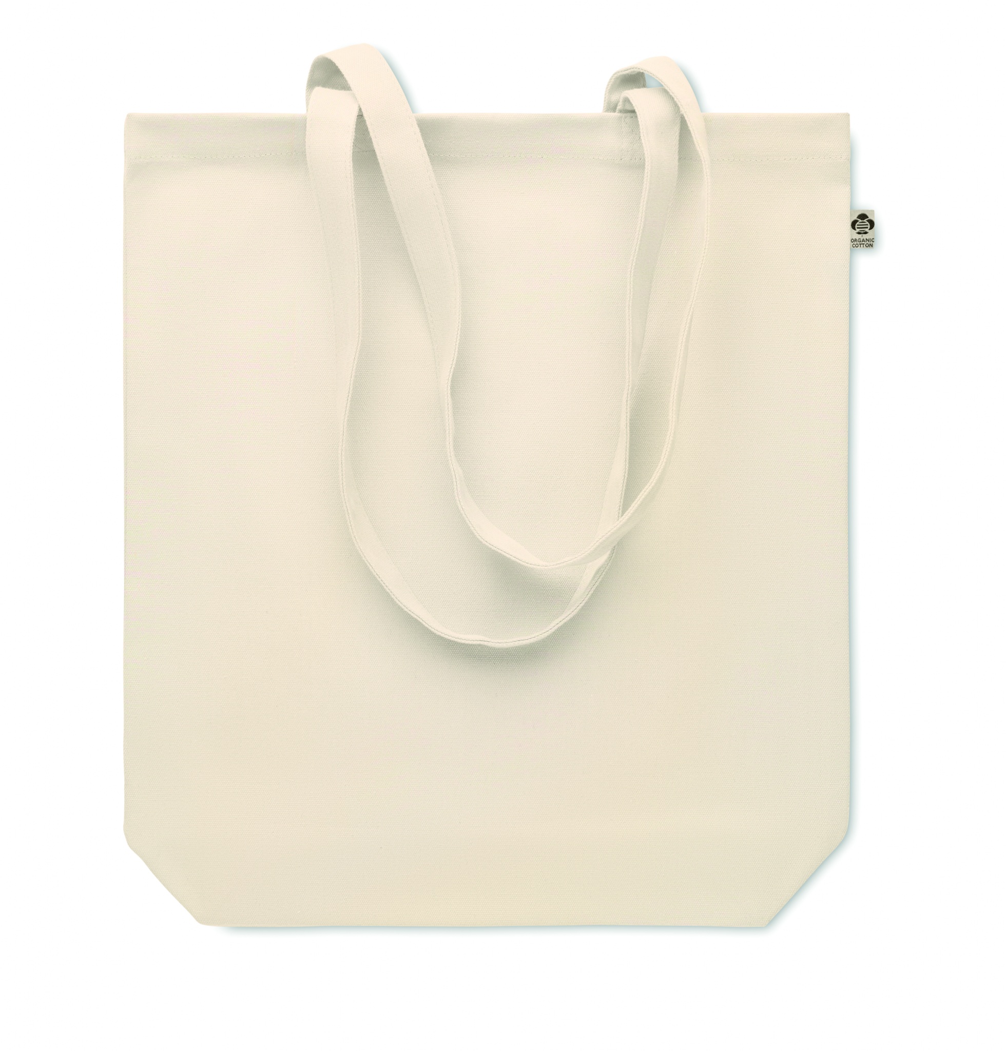 Organic canvas shopping bag with long handles and bottom gusset. 270 gr/m².