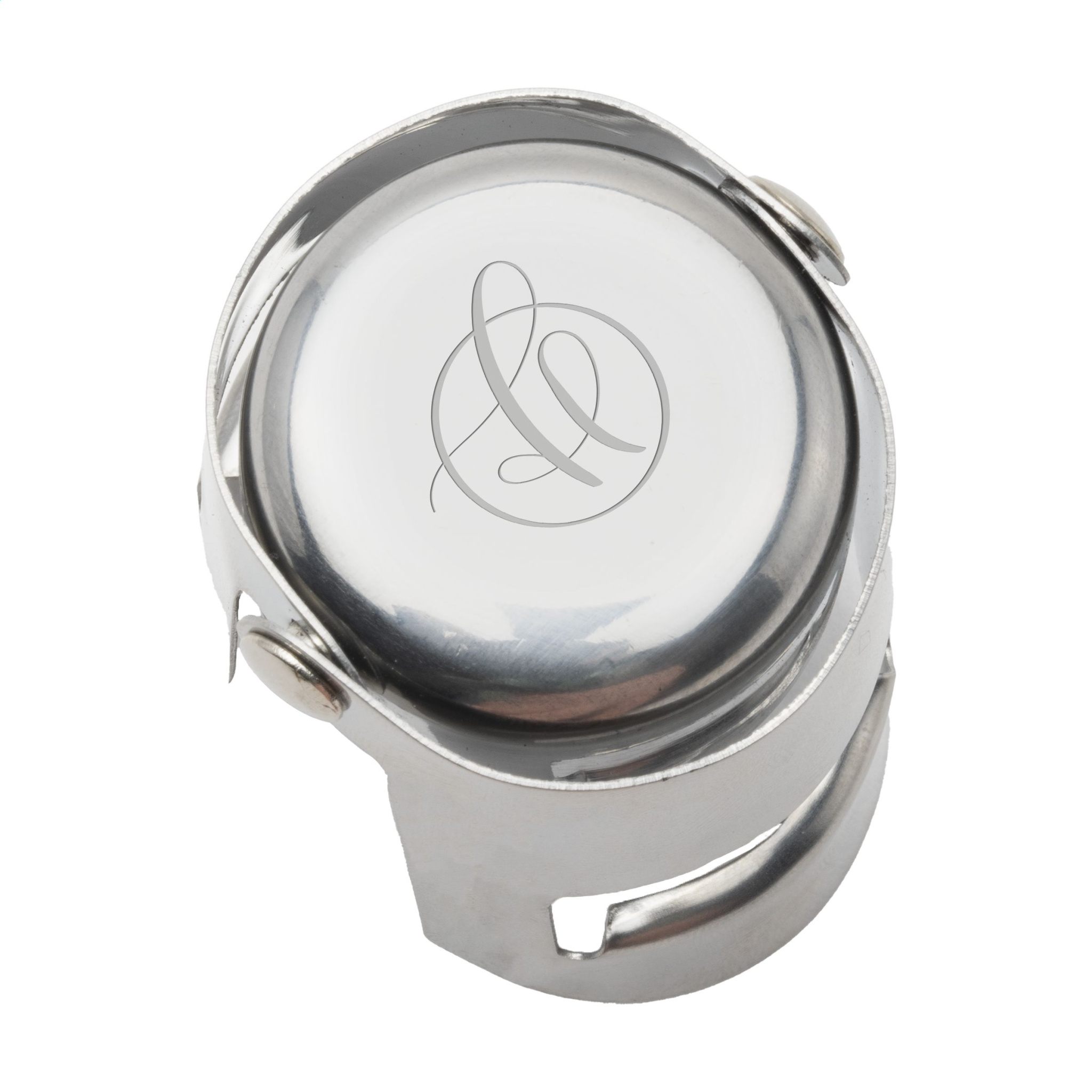 Stylish stainless steel bottle stopper for the airtight closure of champagne bottles and wine bottles with a cork.