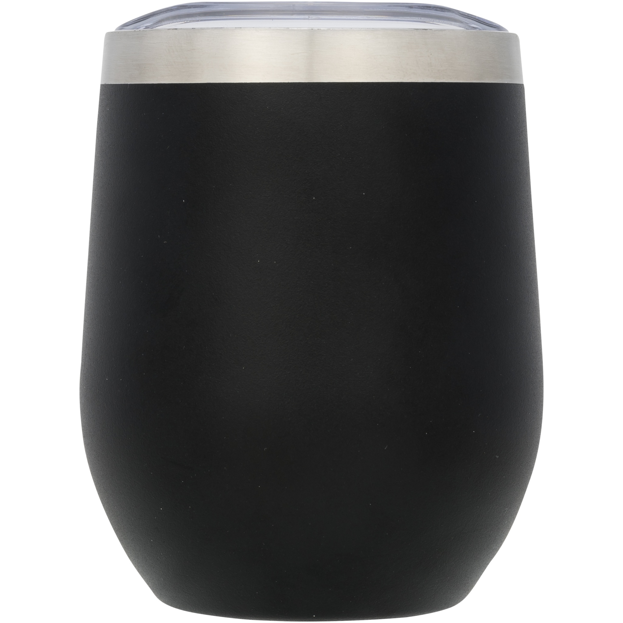 The Corzo copper vacuum insulated cup has a double-wall vacuum construction with copper insulation which means it keeps drinks hot for 6 hours and cold for 24 hours. The construction prevents condensation on the outside of the tumbler. Easy sipping, push-on lid. Features spray powder coating on the outer body. Wide opening for comfortable filling and pouring. Volume capacity is 350 ml. Presented in an Avenue gift box.