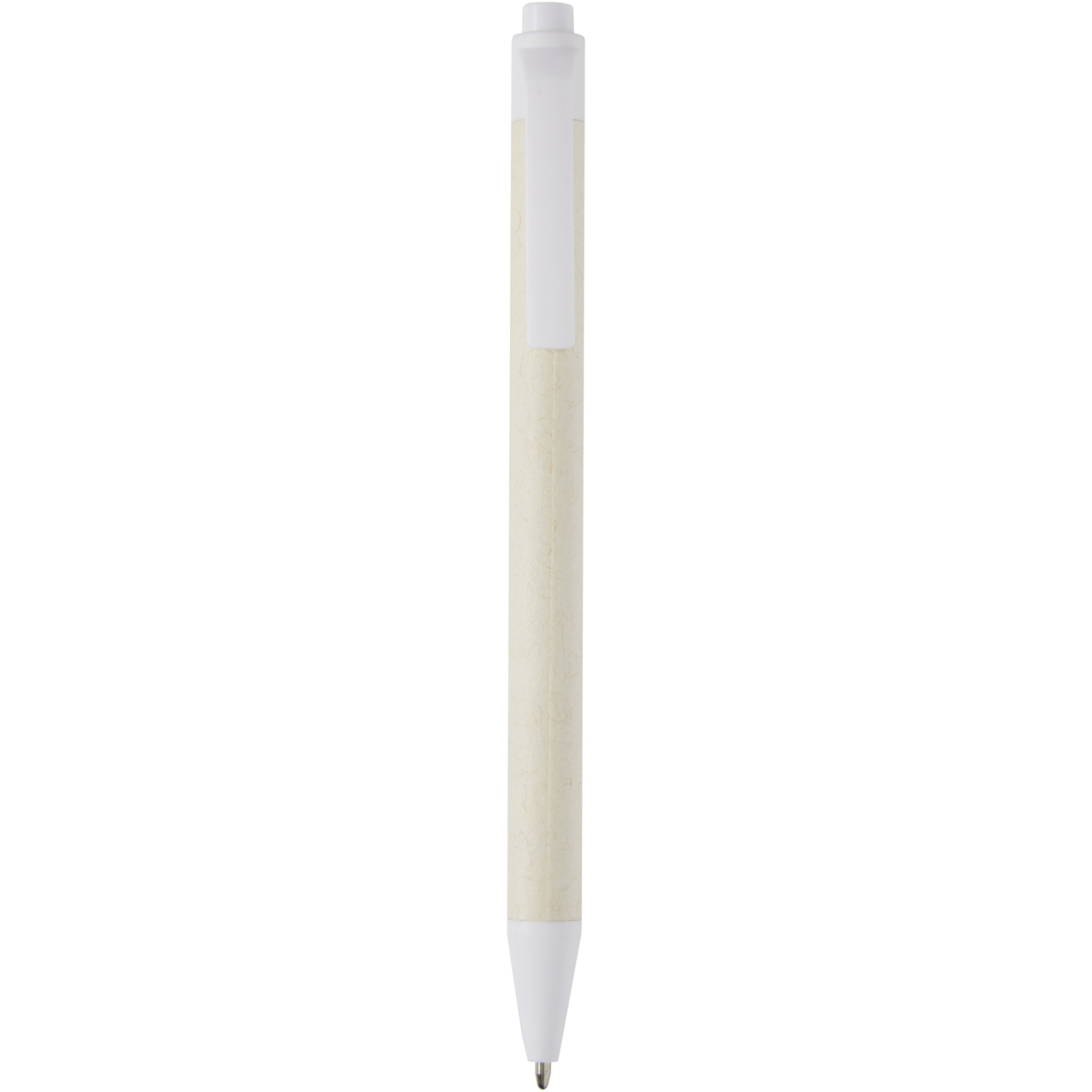 Click action ballpoint pen featuring a barrel made from recycled milk cartons (up to 70%). The button, clip, and tip are made of PLA plastic. Used milk cartons are collected, sorted, processed, and turned into paper, truly turning waste into something useful.