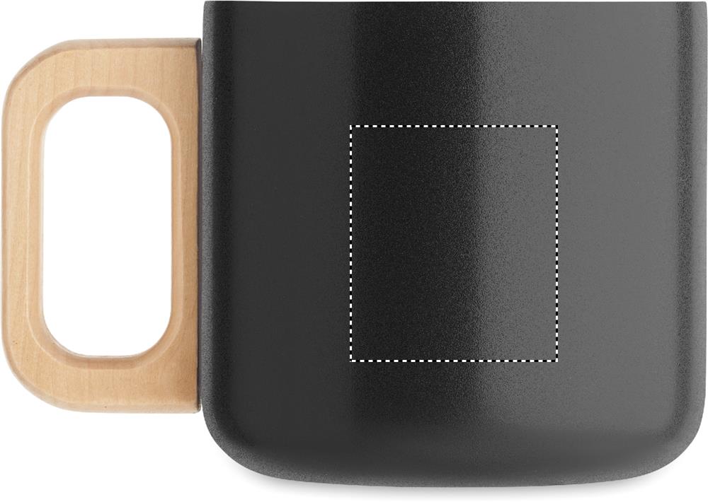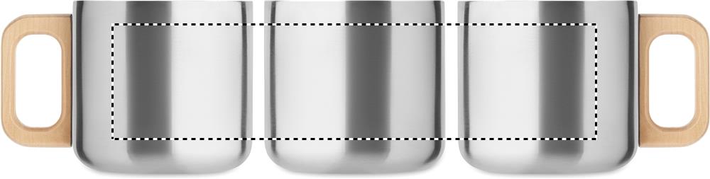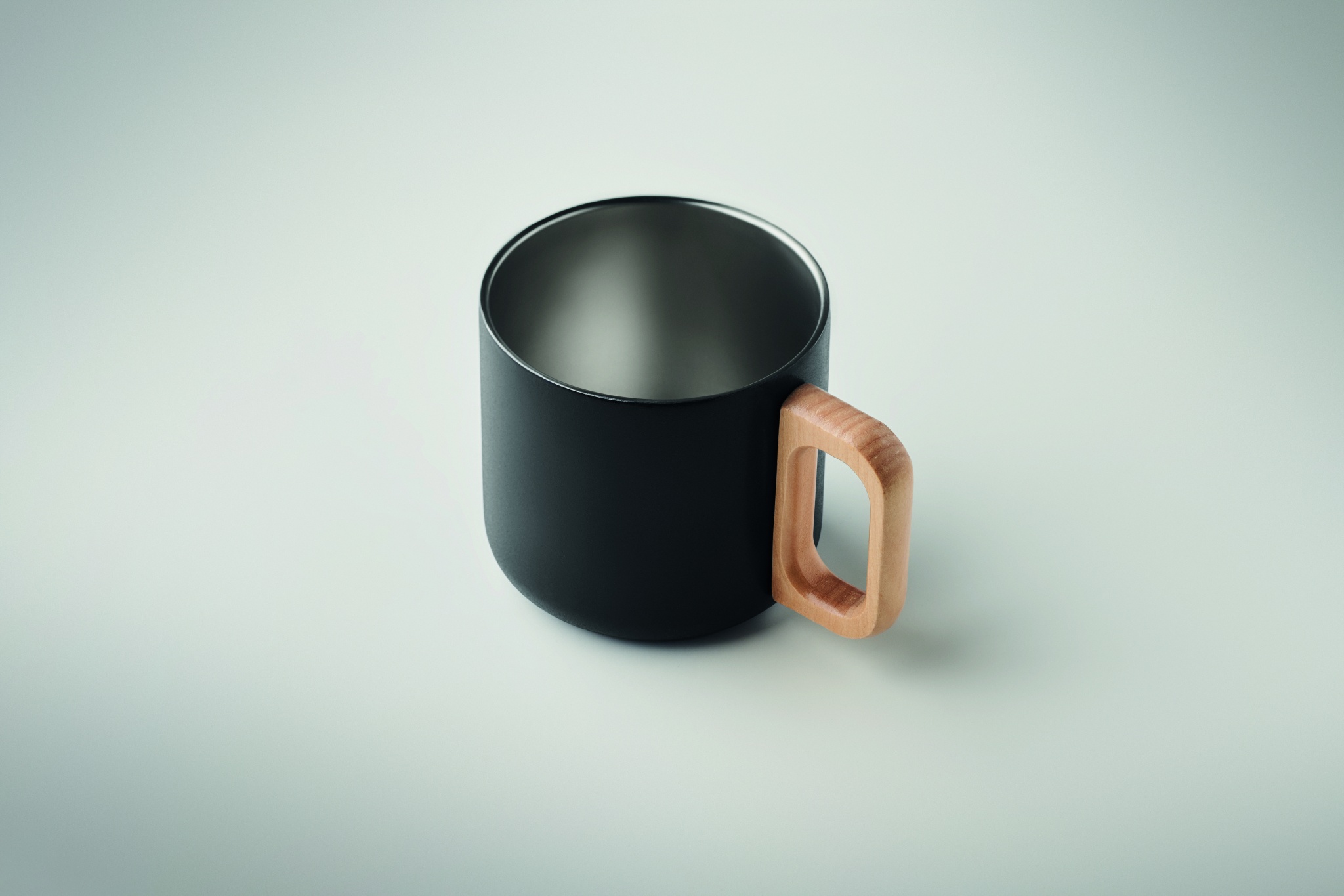 Double wall mug in recycled stainless steel (90% recycled stainless steel and 10% stainless steel) mug with wooden handle. Capacity: 350 ml.