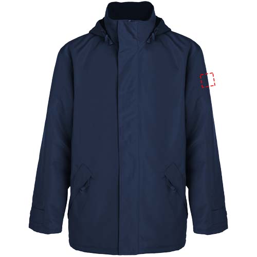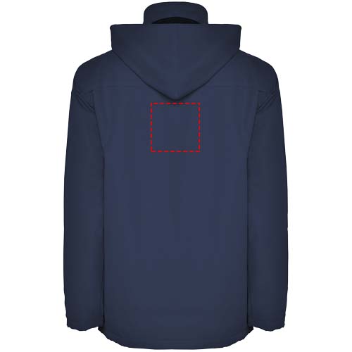 Padded waterproof jacket. Central molded zipper with matching flap. High neck with foldable hood. Side pockets with zip and flap. Adjustable cuffs with straps. Two inner pockets with hook and loop fastening. Inner decoration access zipper. Waterproof. Wind-proof. The models are 120/122 cm and are wearing size 6.