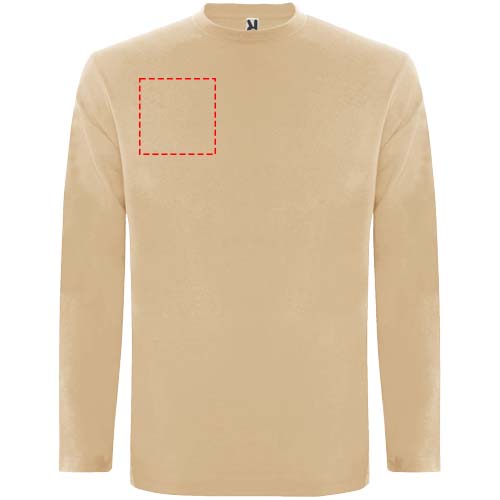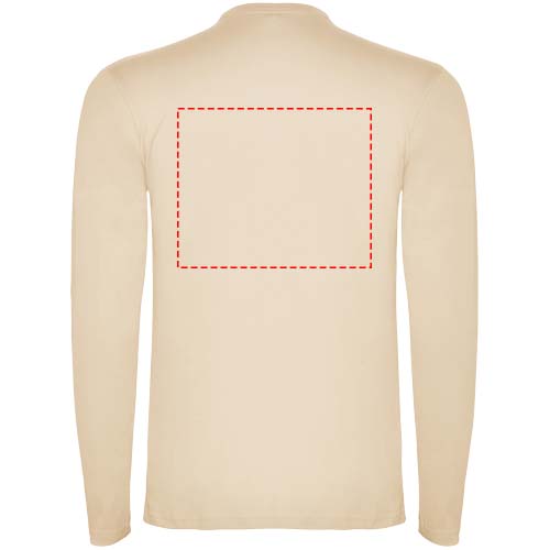 Long-sleeve t-shirt in tubular fabric and 4-layer crew neck. Reinforced covered seams in collar and shoulders. No cuffs. Removable label. Tubular design in adult sizes and side seams in kids sizes. The model is 185 cm and is wearing size L.
