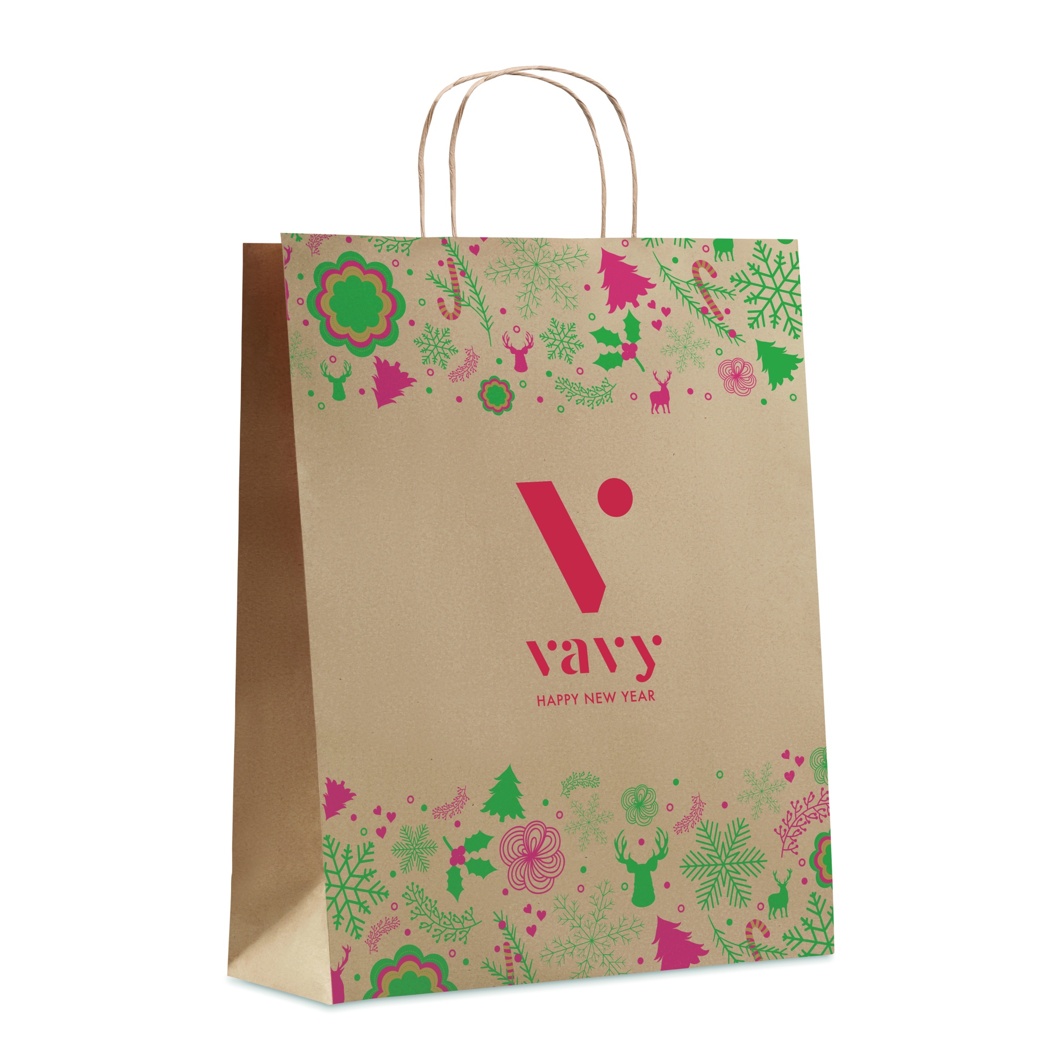 Christmas large paper gift bag (50% recycled) bag. 90 gr/m². Made in EU.