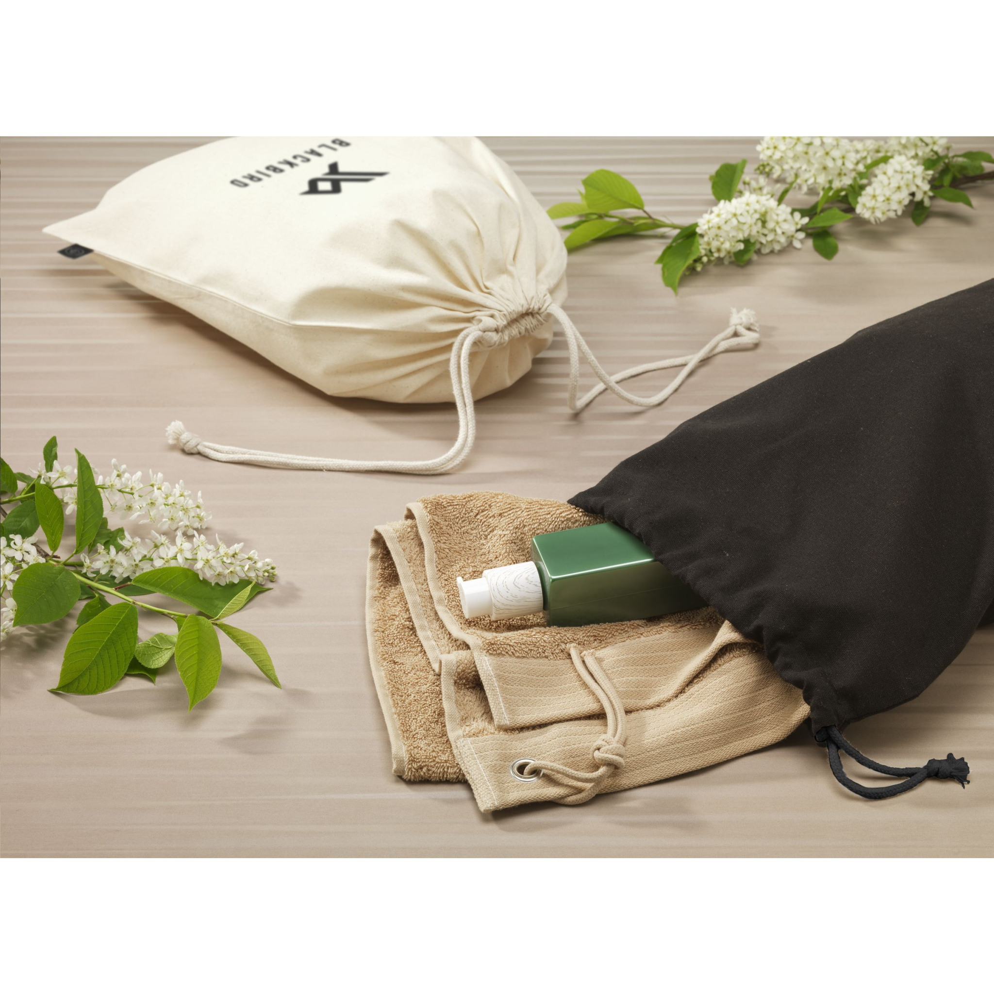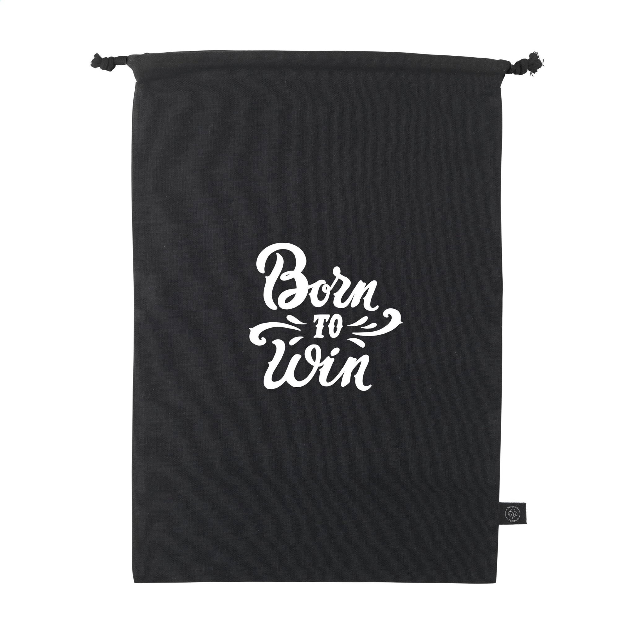 Gift pouch made from recycled cotton (150 g/m²). With drawstrings made from recycled polyester and recycled cotton. Original as gift packaging and suitable for storing items. GRS-certified. Total recycled material: 100%. Capacity approx. 4 litres.