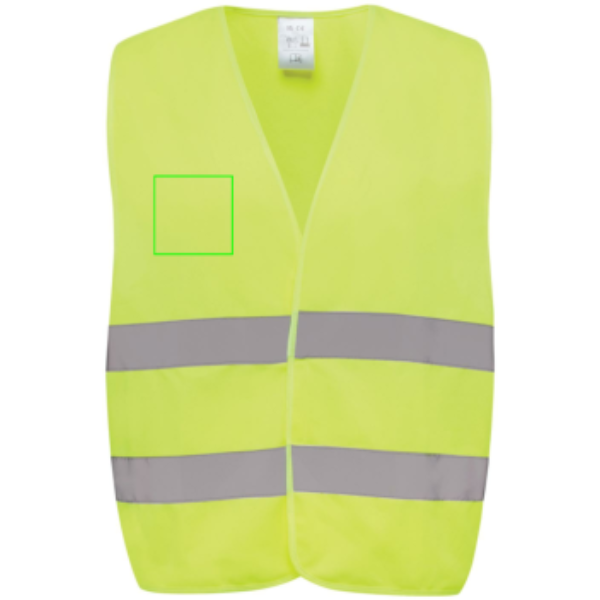 Unisex Class 2 high-visibility warning vest that is designed for individuals with heights ranging from 164 to 198 cm. This vest offer ample space for large decorations on both the front and back, making them ideal for professional use where visibility is paramount. It features a fluorescent background coupled with reflective tape, ensuring compliance with the EN ISO 20471:2013+A1:2016 standard. Furthermore, the garments are marked with the CE symbol to affirm their adherence to EU Regulation 2016/425/EU, categorizing it as Personal Protective Equipment Category II. Made with GRS certified recycled PET. Total recycled content: 67% based on total item weight. GRS certification ensures a completely certified supply chain of the recycled materials.