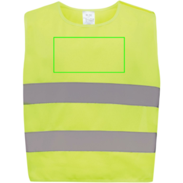 XS-sized high-visibility vest designed for children aged 3 to 6, with a height range of 90 to 140 cm. This vest features space for decoration on both the front and rear sides. It is equipped with hook and loop closures on the shoulders and at the bottom for added safety and easy donning. The elastic bands on the opposite side provide flexibility, allowing it to be comfortably worn over thick coats. This vest has rigorous testing and complies with EN 17353:2020 Type AB3. Furthermore, it adheres to the PPE guidelines specified in Regulation (EU) 2016/425 for Personal Protective Equipment Category II. Made with GRS certified recycled PET. Total recycled content: 55% based on total item weight. GRS certification ensures a completely certified supply chain of the recycled materials.