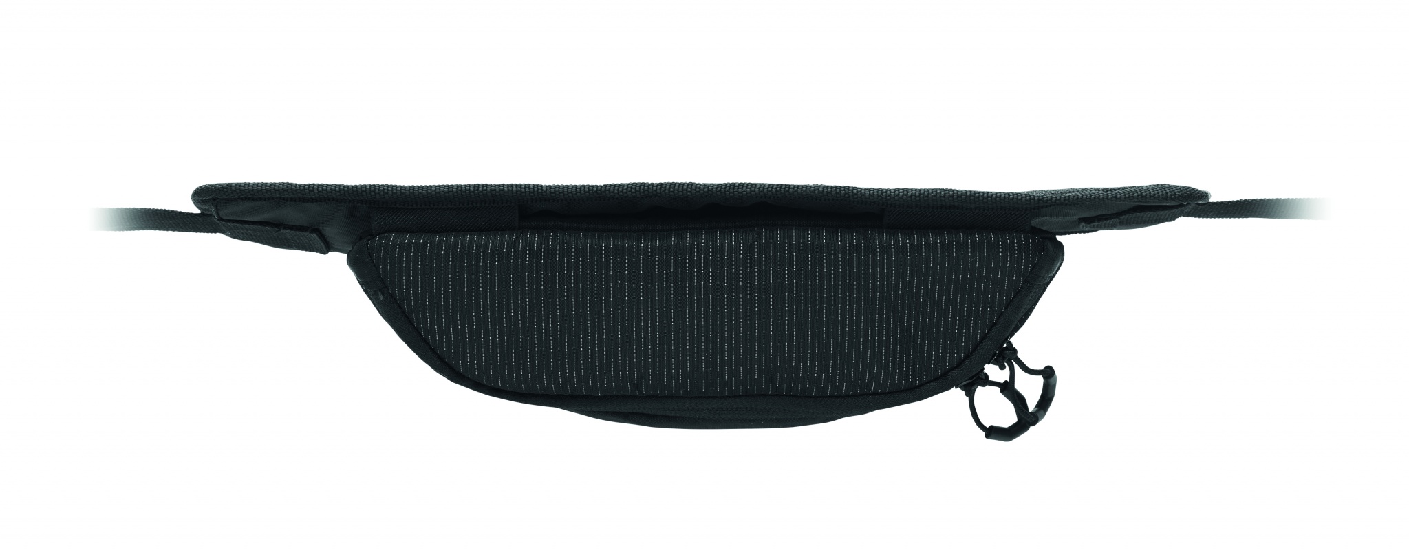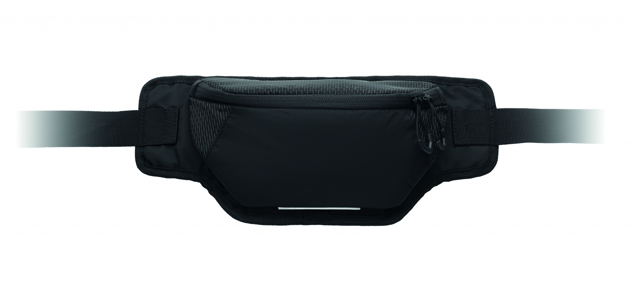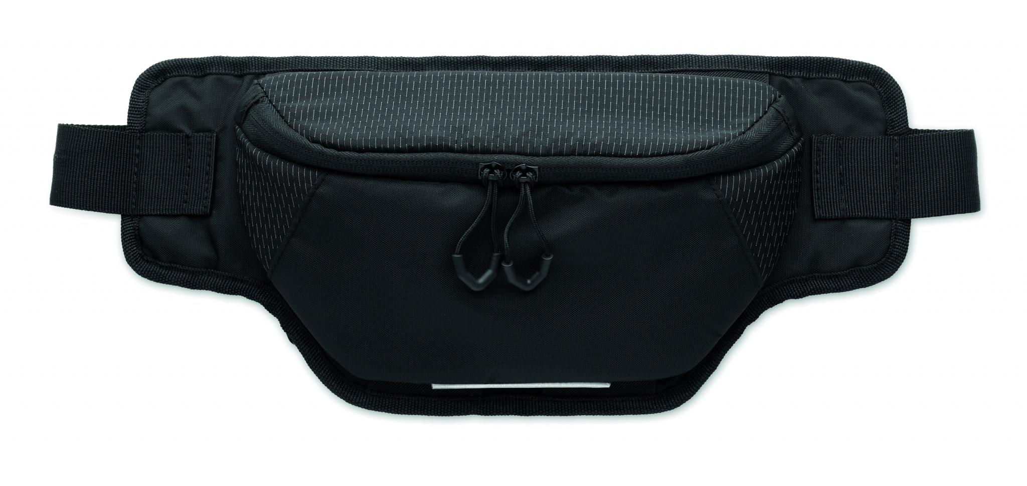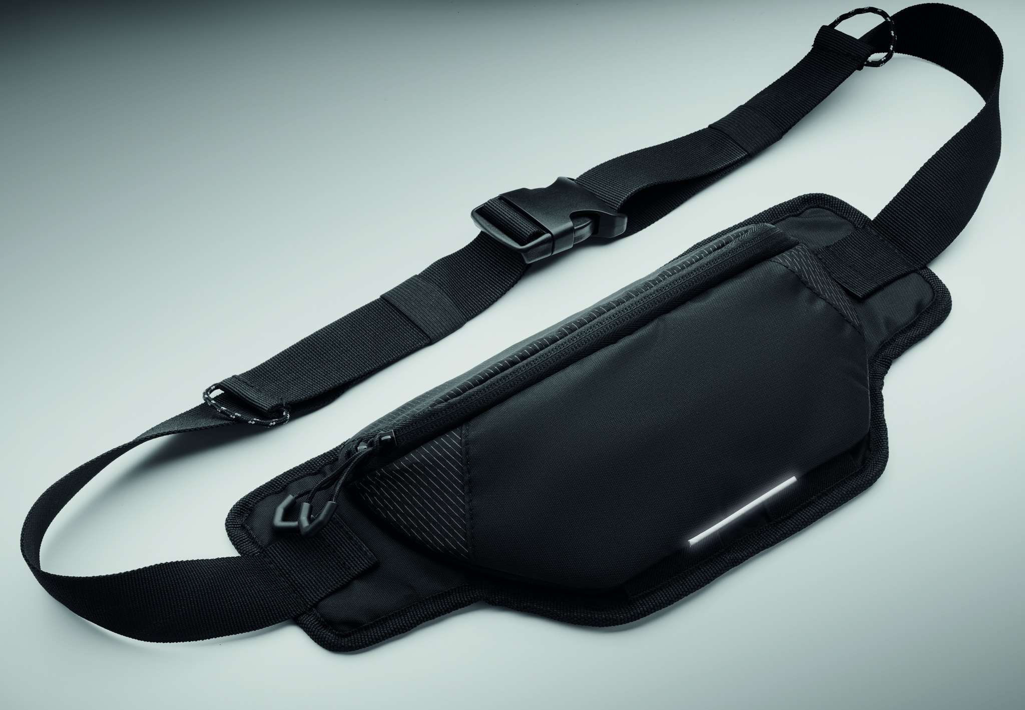 Hiking waist bag in water repellent 420D nylon with 210D polyester lining. Reflective stripe. Fully padded main compartment and large two-way zip opening. Ventilated reverse side.