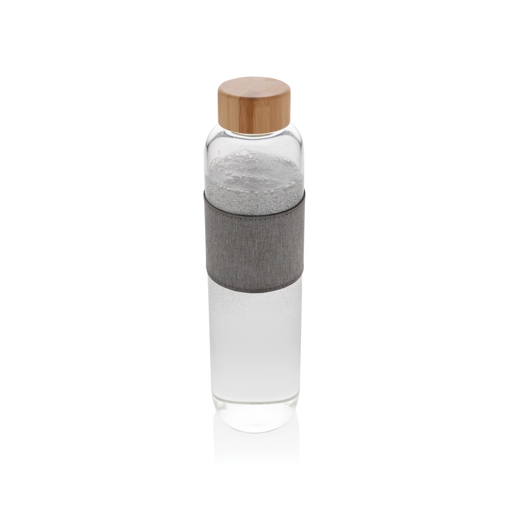 Impact borosilicate glass bottle with bamboo lid, transparent