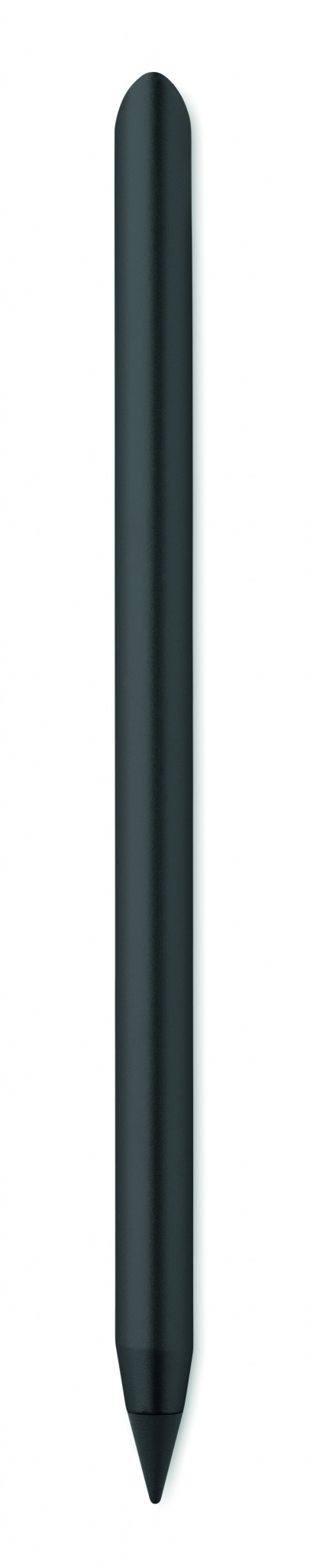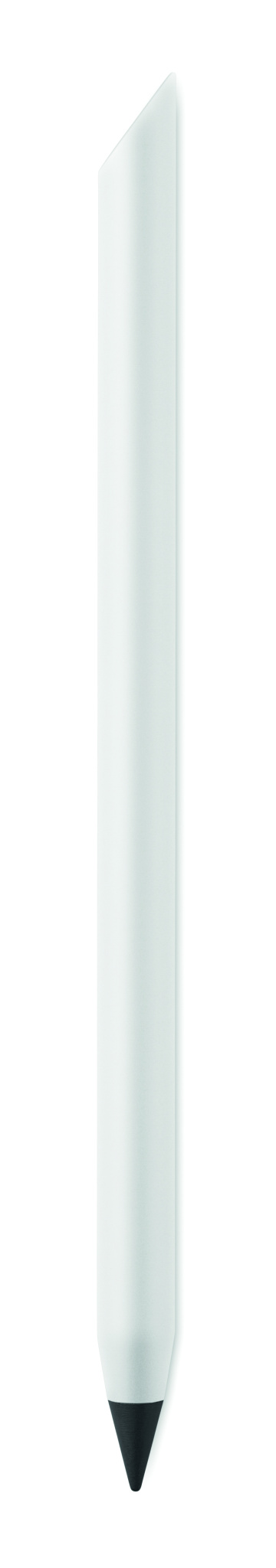 Long lasting recycled aluminium inkless pen. The pen writes with the graphite tip that has a plastic protection cover.