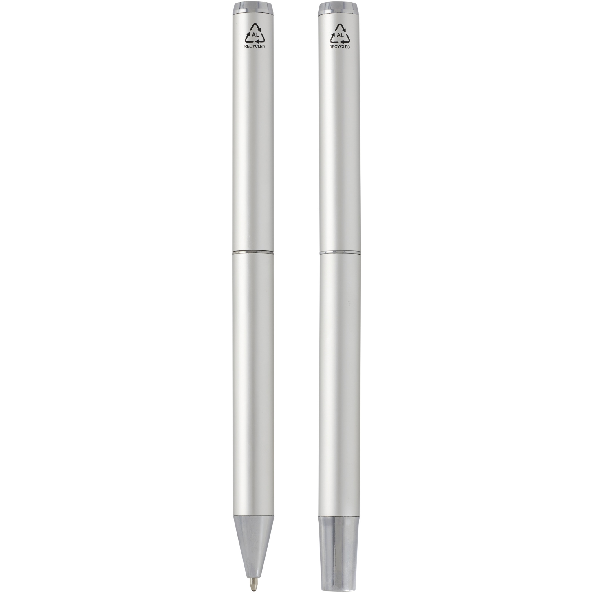 Logotrade advertising product image of: Lucetto recycled aluminium ballpoint and rollerball pen gift set