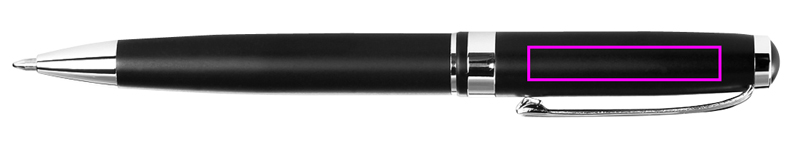 High-quality metal pen in matt black, with shiny silver applications, and elegant case. We will engrave your logo below the clip.
