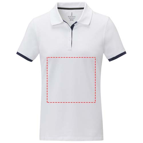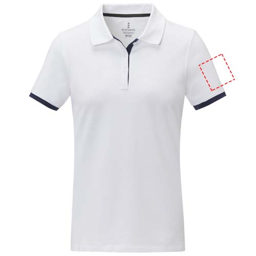 The Morgan short sleeve women's duotone polo is a stylish and comfortable option for any casual or business setting. Made from a 200 g/m² piqué knit cotton fabric, this polo is both durable and breathable. Featuring a flat knit collar and rib cuffs with contrast colour detailing, this polo offers a modern twist on a classic design. The two-button placket and pick-stitch details add an extra touch of sophistication, and the satin neck tape and heat transfer main label provide comfort and ease of wear. This polo is designed with a fitted shape for a feminine look.