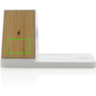 Logo trade promotional gift photo of: Ontario recycled plastic & bamboo 3-in-1 wireless charger