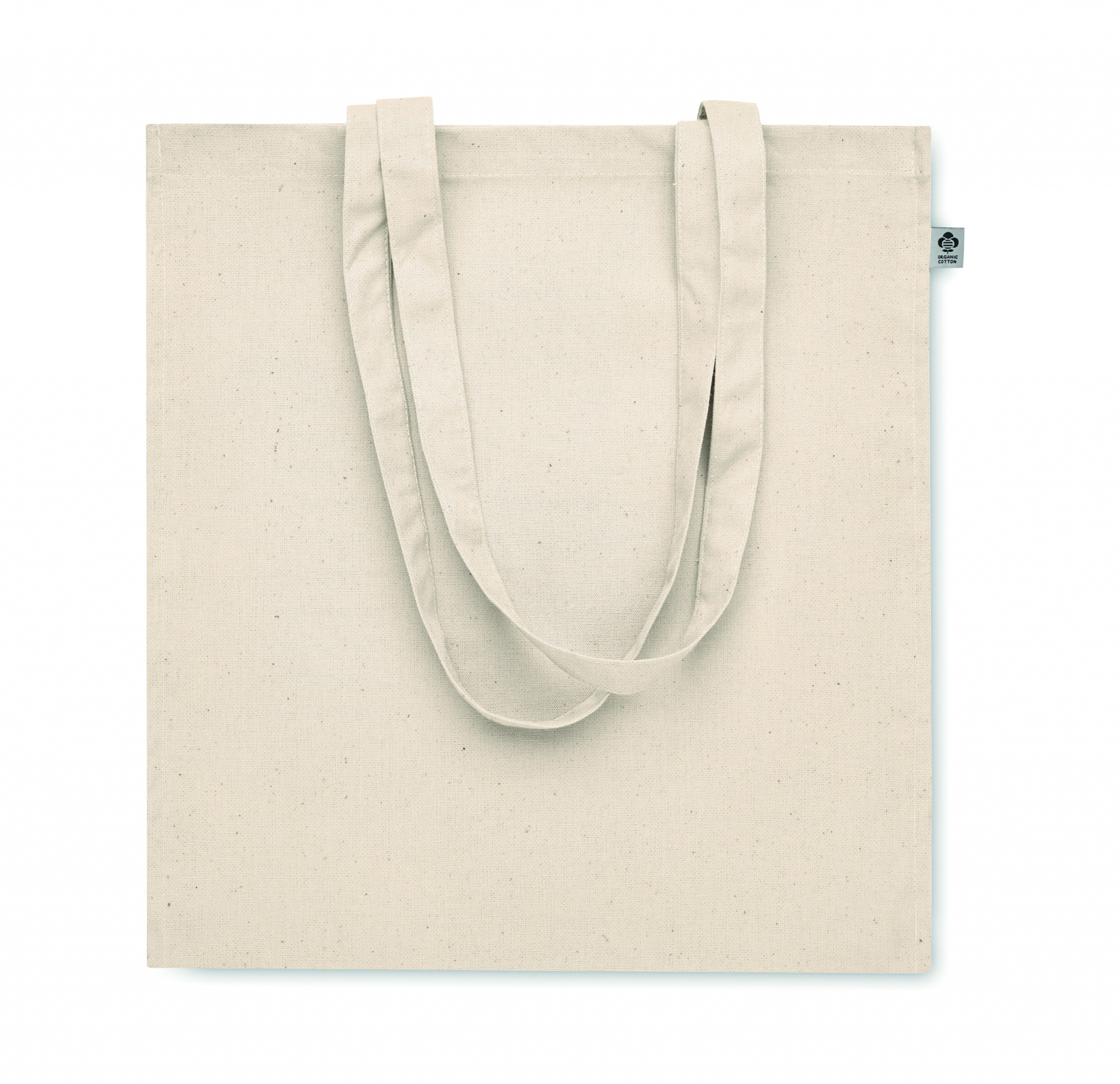 Organic cotton shopping bag with long handles and gusset. 220 gr/m².