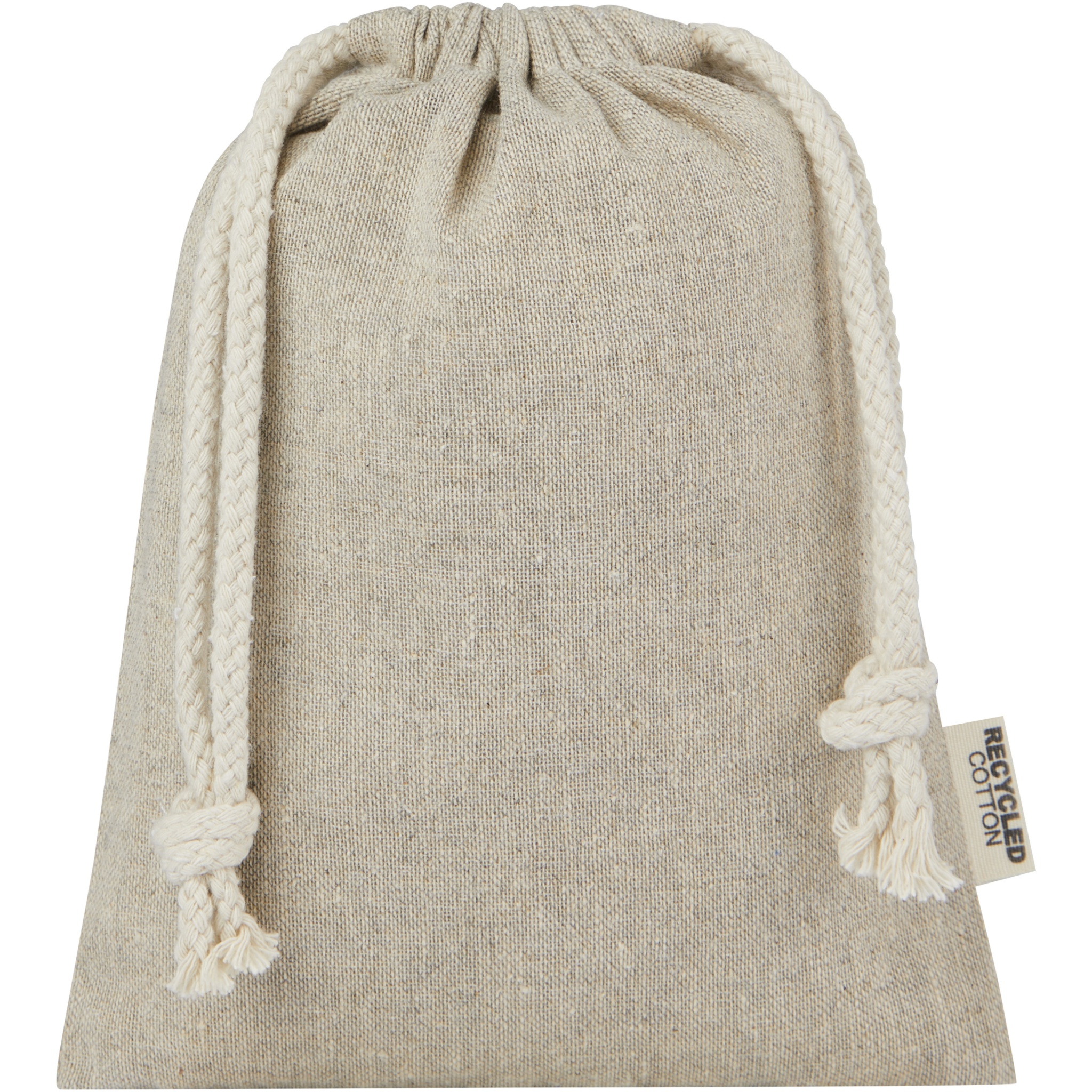 Gift bag made of GRS certified recycled cotton with cotton drawstring closure. Ideal for gifting or storing items. Size: 15 x 20 cm. There may be minor variations in the colour of the actual product due to the nature of the production process.