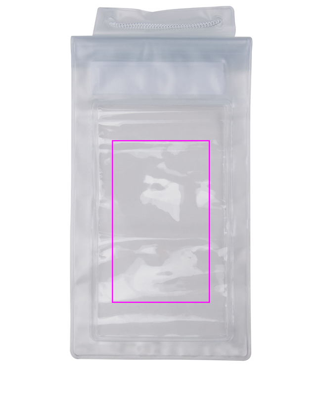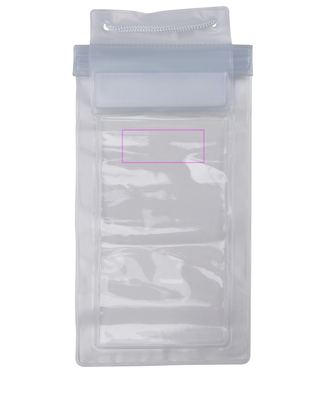 Waterproof phone case with loop and panic lock. We print your logo centered on the bag.