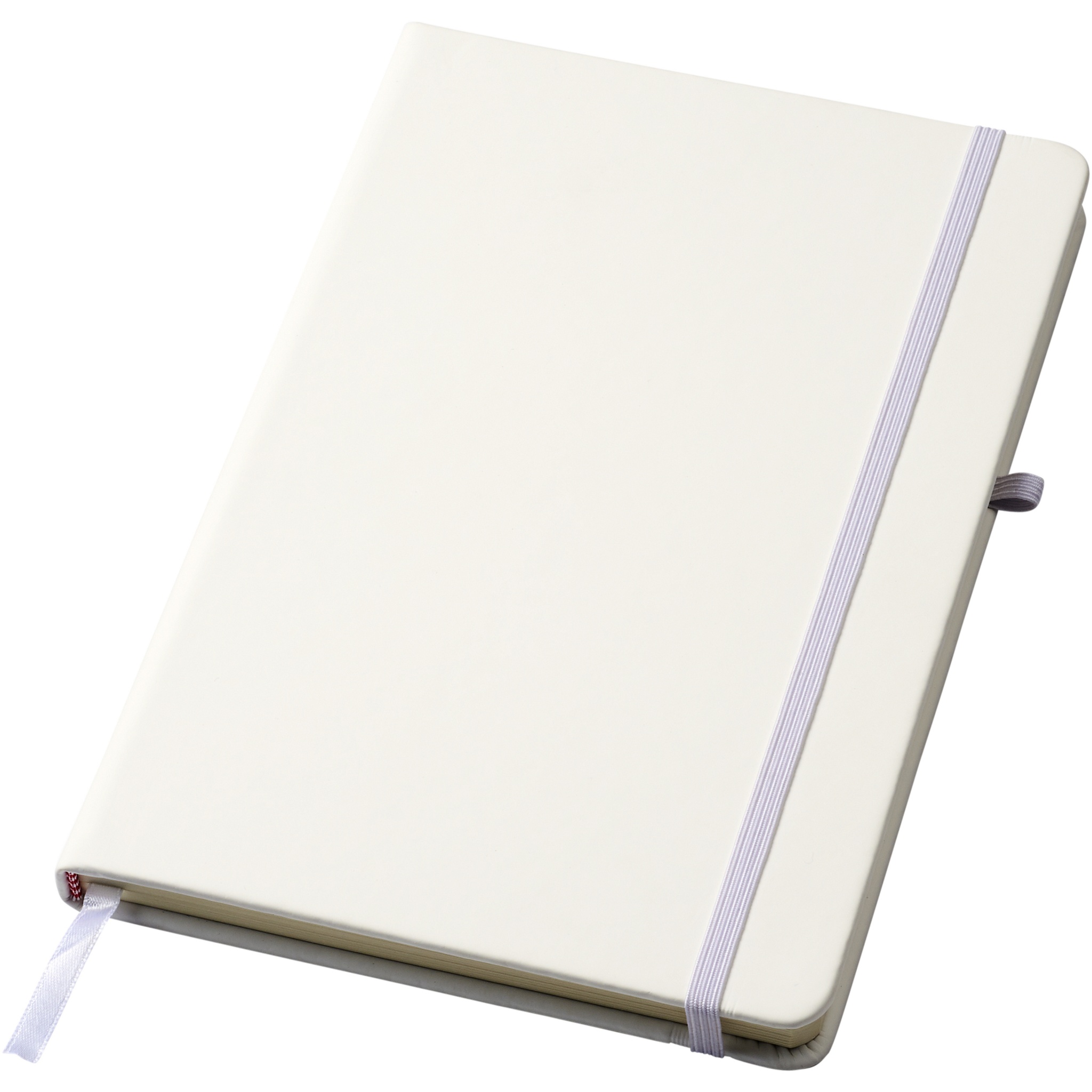 A5 reference size notebook with a matching colour elastic closure, pen loop, and ribbon. Includes 96 sheets of 70g/m2 lined paper. Soft feel PU cover.