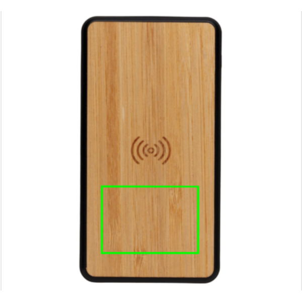 8.000 mAh powerbank Made with RCS (Recycled Claim Standard) certified recycled ABS plastic with soft touch finish and FSC® certified bamboo. Total recycled content: 20 % based on total item weight. RCS certification ensures a completely certified supply chain of the recycled materials. Supports 5W wireless charging and charging via USB port by cable. Input both via micro USB as welll as type C. When fully charged it will provide you with enough energy to re-charge your mobile phone up to four times. The powerbank contains a long-lasting grade A 8.000 mAh lithium polymer battery. The power indicators will indicate the remaining energy level so you always know when to re-charge. Micro input 5V/2A Type-C input 5V/2A USB Output 5V/2.4A. Wireless Output 5W 5V/1A. Packed in FSC® mix packaging. Including RCS certified recycled TPE charging cable.