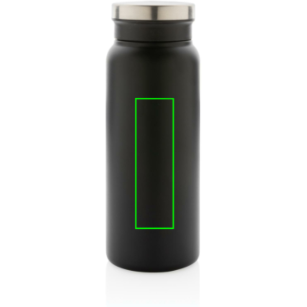 This RCS Recycled stainless steel vacuum bottle comes with a secure screw-on lid that features a wide opening for easy cleaning and filling. The additional PP insert ensures that the bottle is leakproof. This bottle is made from recycled stainless steel and features a double-wall construction to keep your favourite beverages warm for up to 5 hours or cold for up to 15 hours. Made with RCS (Recycled Claim Standard) certified recycled materials. RCS certification ensures a completely certified supply chain of the recycled materials. Total recycled content: 77% based on total item weight. BPA free. Capacity 600ml. Including FSC®-certified kraft gift box.