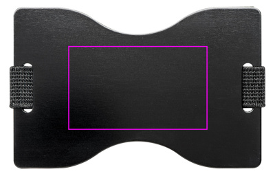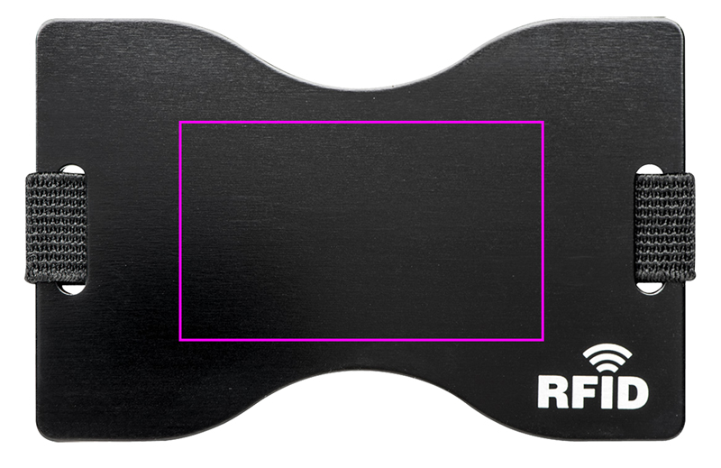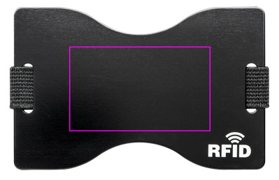 Aluminum card holder with RFID (Radio Frequence Identification) protection against the unauthorized reading of e.g. credit cards, bank cards, identity card etc. The logo is lasered on the case.