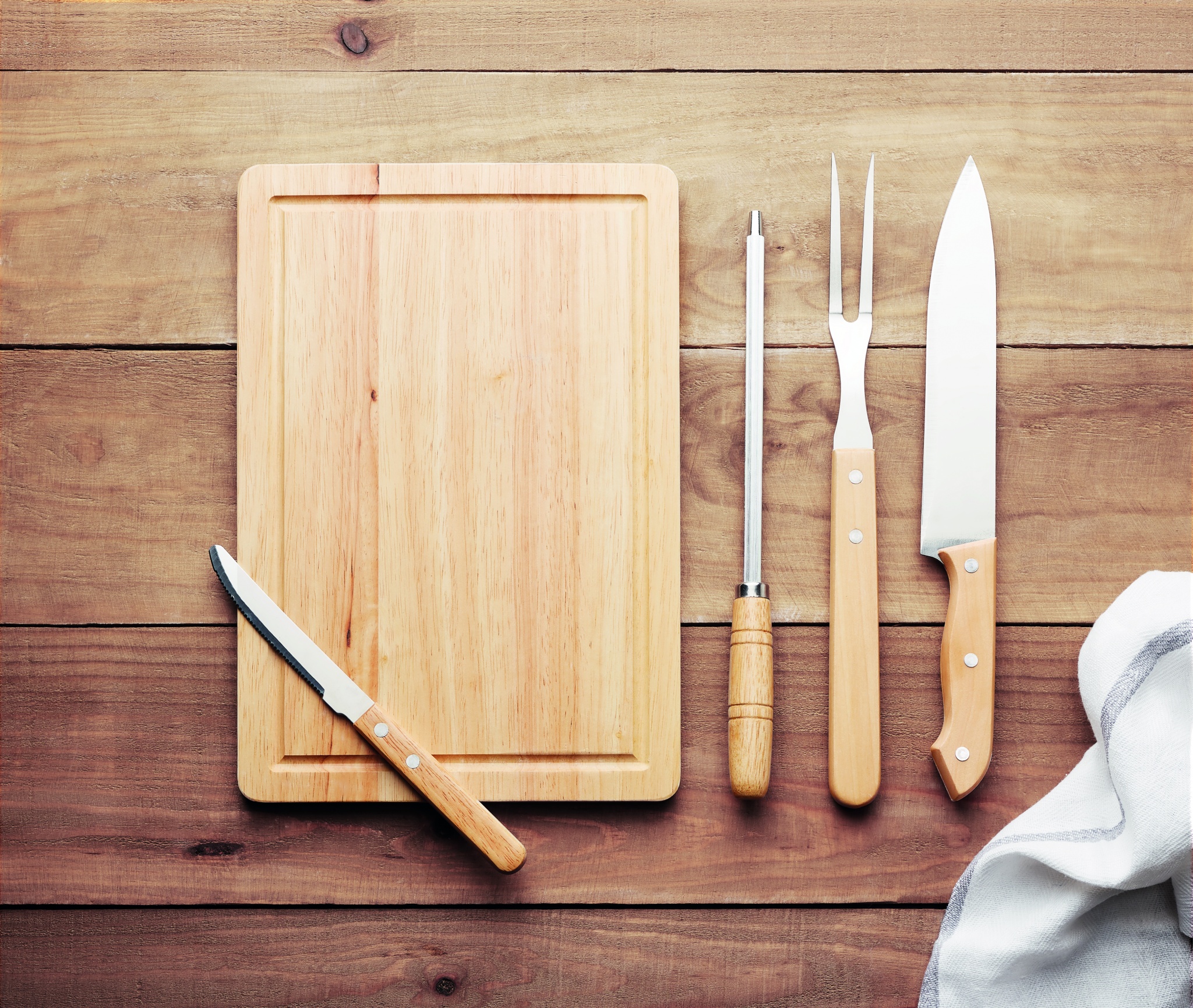 Set of 4 stainless steel barbecue grilling accessories with cutting board in polyester pouch. Includes a meat cleaver, knife, fork and sharpening bar. Bamboo is a natural product, there may be slight variations in colour and size per item, which can affect the final decoration outcome.