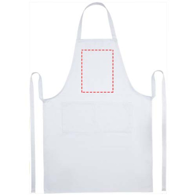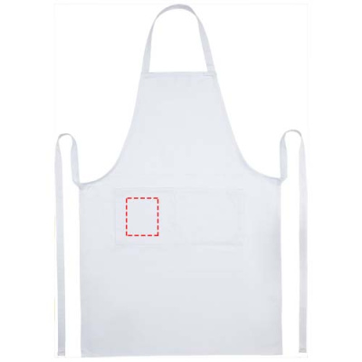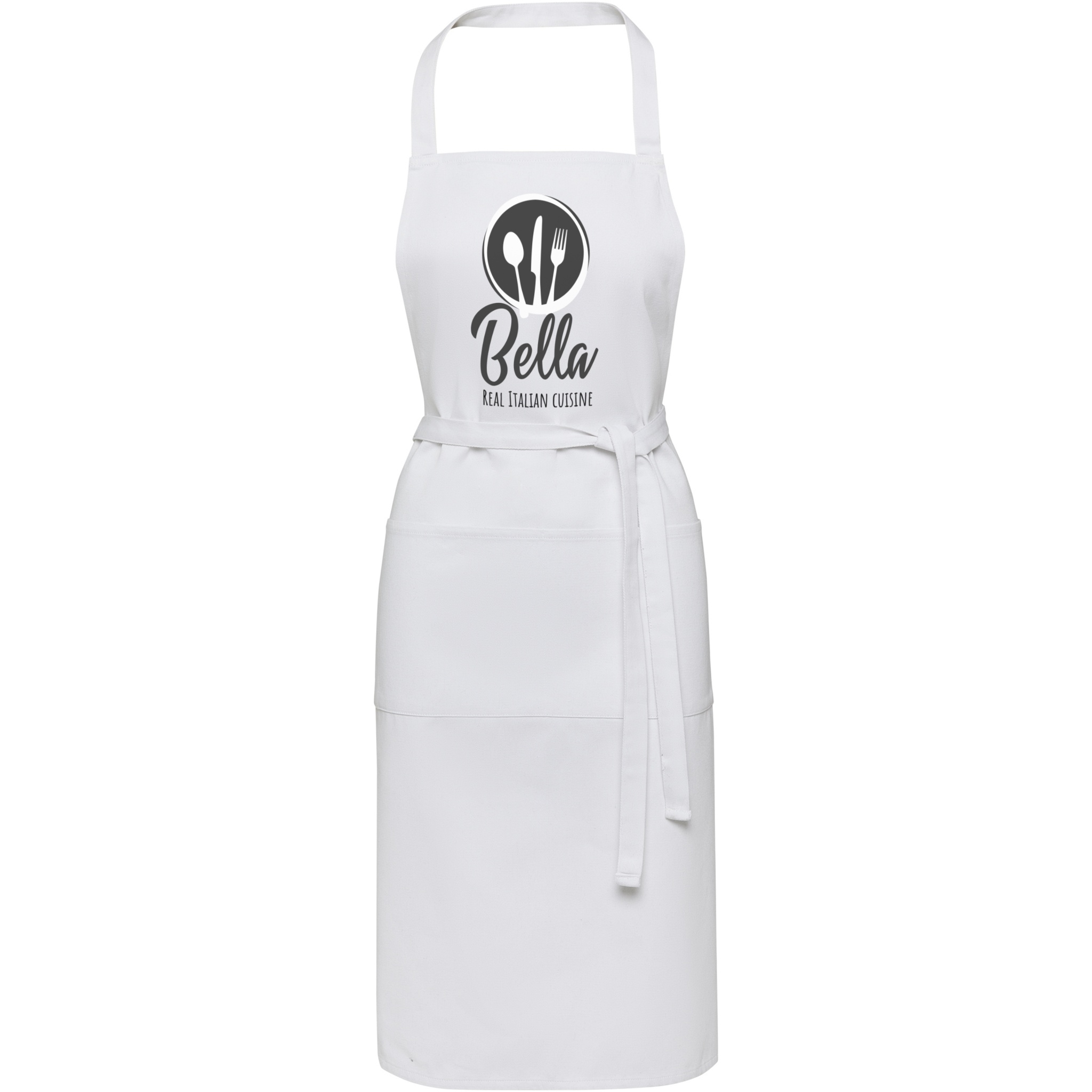 The Shara apron is made of 240 g/m2 70% recycled cotton and 30% recycled polyester making it thick and sturdy, and comfortable to wear. It features 2 adjacent pockets (each 22 x 20 cm), and a 1 metre tie-back closure. The apron incorporates Cyclo® recycled fibres where they use pre-sorted waste that determines the colour of the yarn. These fibres do not only reduce the demand for virgin resources but also exhibit a commitment to a circular life, embodying the essence of reducing waste and promoting a closed-loop system. Each apron also comes with an Aware™ tracer. This innovative feature allows users to trace the origins and journey of their item through a QR code, enhancing transparency in the supply chain and fostering a stronger connection between the product and its production process.