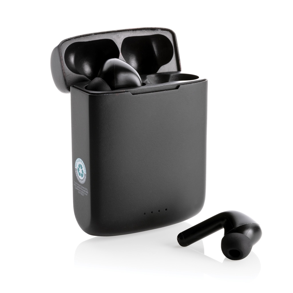 Skywave RCS recycled plastic solar earbuds, black