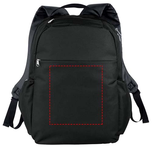 Large double zipped main compartment with padded laptop sleeve that can hold up most 15" laptop. Four additional zipped organizational pockets for all your technology essentials. Two side zipped compartments ideal for cables, chargers, etc. Large zipped front pocket. Top zipped pocket for quick access. Padded back panel. Double padded adjustable shoulder straps. Top carry handle. Accessories not included.