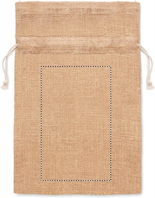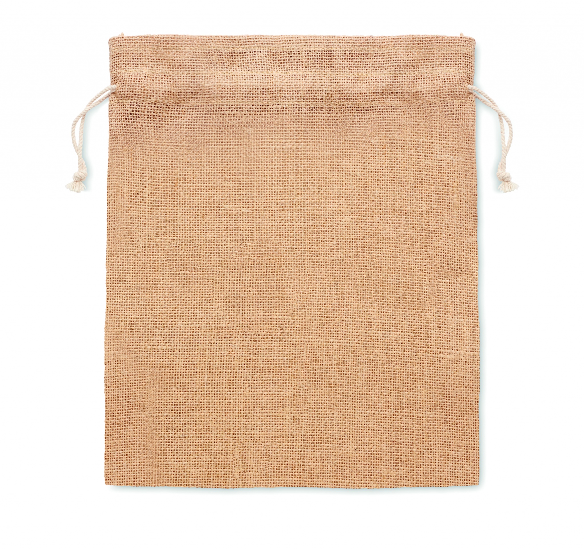Small gift jute draw cord bag. Size approx. 14 x 22cm.