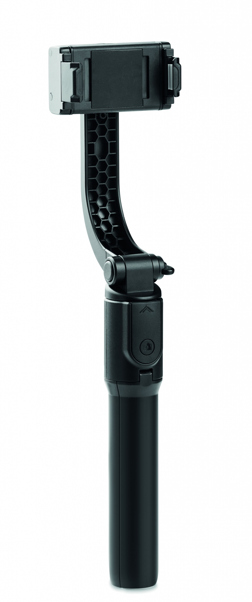 Telescopic smartphone holder and stabiliser with tripod functionality. 1-axis gimbal. 400 mAh LiB battery.