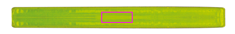 Flexible, reflective snap bracelet made of plastic with metal spring. We place your advertising imprint on the reflector surface. Due to the material, the print is only possible in one color in black.