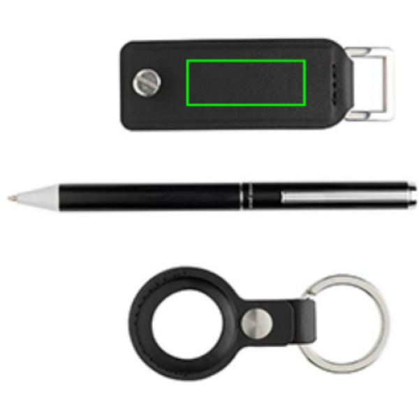 Swiss Peak Tula RCS certified key organiser, practical AirTag Holder and recycled aluminium Pen. Crafted for efficiency and style, the key organiser keeps your keys in check (for max 4 keys), while the AirTag Holder ensures you never lose track of your valuables. Plus, jot down your notes with the recycled aluminium pen. Elevate your everyday carry with this perfect set. Made with RCS (Recycled Claim Standard) certified recycled materials. RCS certification ensures a completely certified supply chain of the recycled materials. This product contains 7% RCS Certified Recycled PU and 8% RCS Certified Recycled Aluminium.