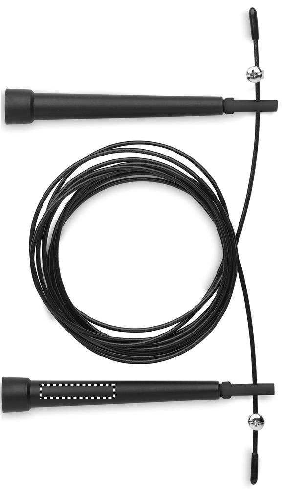 Adjustable speed jumping rope in 210D RPET pouch.