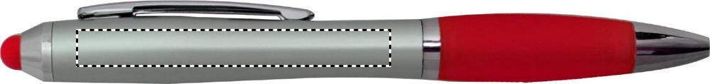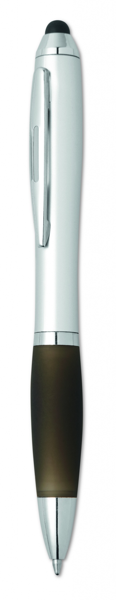 Twist action ball pen in ABS with stylus soft grip and matching tip. Blue ink
